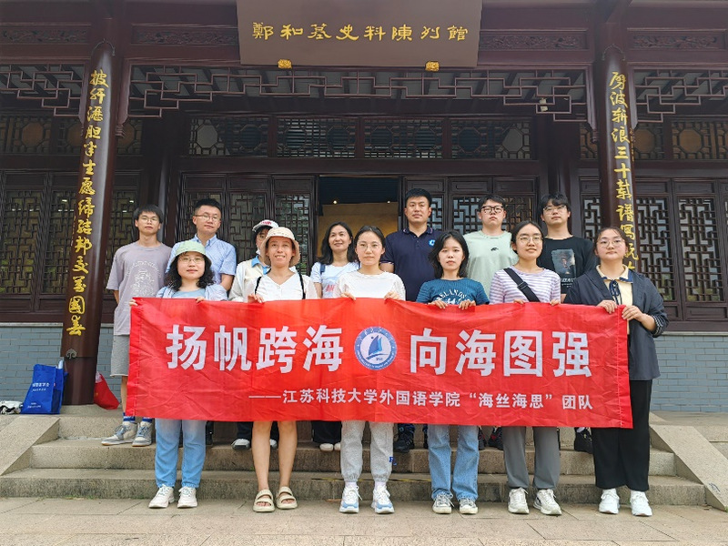 在第18届“中国航海日”到来之际,7月9日,外国语学院“海丝海思”社会实践团队前往南京牛首山“郑和文化园”,参加由南京郑和研究会组织的中国航海日纪念活动,活动吸引了来自耕读南京爱心研习社、江宁区“新时代”文明实践志愿服务队等多家社会团体,以及众多热爱郑和文化的社会人士的积极参与。