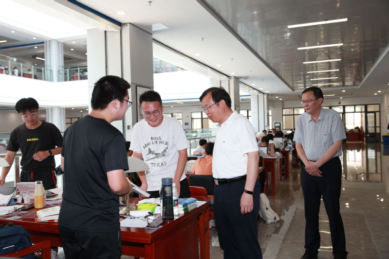 在图书馆,在馆人数近1000人,有研究生,也有即将进入大四的本科生,大家埋头苦学,补不足,学新知。“复习有什么困难?”“在图书馆学习有什么其它需求?”……周南平校长轻轻走近同学,问长问短,他表示,同学们假期留校复习考研或者深入学习,有了目标,要树立信心并付出努力,要坚持不懈,要保持平常心,更要有恒心,当然也要劳逸结合,要加强运动,保持健康的体魄。目前,学校条件有限,不能完全满足同学们的需求,但是也要力所能及地做好相关服务。学校的心与同学们的心在一起,希望同学们珍惜在校的奋斗时光,希望考研的同学努力不负期望,考上心仪的学校,也希望有更多学生报考910023威尼斯,希望在研究生的开学典礼上能再次见到大家。有同学现场提意见建议,相关职能部门现场办公,力求最快解决同学们的诉求。