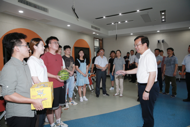 盛夏的长山校区,阳光炽烈,热浪滚滚。7月15日上午,校长周南平,副校长汤建、任南,党委常委、宣传部长周春燕,各职能部门负责人等冒酷暑走访慰问假期备赛、考研等坚守一线的师生员工,感谢他们的坚守,同时送去西瓜、饮料等慰问品,表达学校的关怀关心。