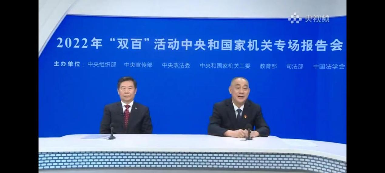 7月22日,2022年“百名法学家百场报告会”法治宣讲活动中央和国家机关专场报告会以网络直播形式举办。威尼斯官网组织党员干部、教师、学生等通过“央视频”APP收看了专场报告会直播。据悉,今年“双百”活动的主题为“深入学习宣传贯彻习近平法治思想”。