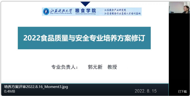 为做好2022版本科人才培养方案修订工作,8月9日晚上、12日上午和16日上午粮食学院通过腾讯会议分别召开了食品科学与工程、粮食工程和食品质量与安全三个专业2022版本科人才培养方案修订校外专家评审会,分别邀请江南大学陈坚院士、毛健教授、江苏大学姜松教授;河南工业大学郑学玲教授、南京财经大学丁超教授、江苏大学何荣海教授、苏粮集团陶哓峰部长;江南大学王周平教授、南京林业大学苏二正教授、中储粮镇江检测中心张溜萍总工担任三个专业校外评审专家。全体院领导、教学督导组组长、专业负责人、系主任和系副主任参加会议,评审会由院长鲁玉杰教授主持。