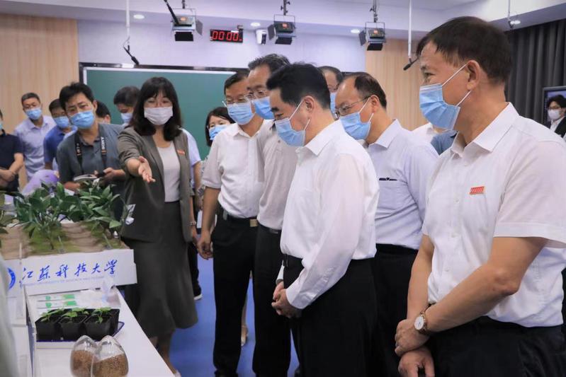 张爱军对学校事业发展取得的成绩和疫情防控工作表示充分肯定。他指出,长山校区环境优美、布局合理,设施先进,学生返校后校园疫情防控任务艰巨,学校要进一步强化责任担当,积极主动作为,毫不放松地把常态化疫情防控和维护安全稳定工作抓紧抓实抓细,进一步压实“疫情要防住、经济要稳住、发展要安全”重大要求,确保学校安全稳定,确保师生员工生命安全和身体健康。他表示,近年来,学校坚持特色发展、内涵建设,在学科建设、高水平大学建设方面表现突出,学校深度对接国家重大战略需求,主动担当、积极作为,为打造“国之重器”作出了积极的贡献。希望学校继续对接船舶与海工产业需求,培养行业特色型人才,深入推进产教融合,让更多科研成果转化为现实生产力,为谱写“强富美高”新江苏现代化建设新篇章、海洋强国建设作出更大贡献。