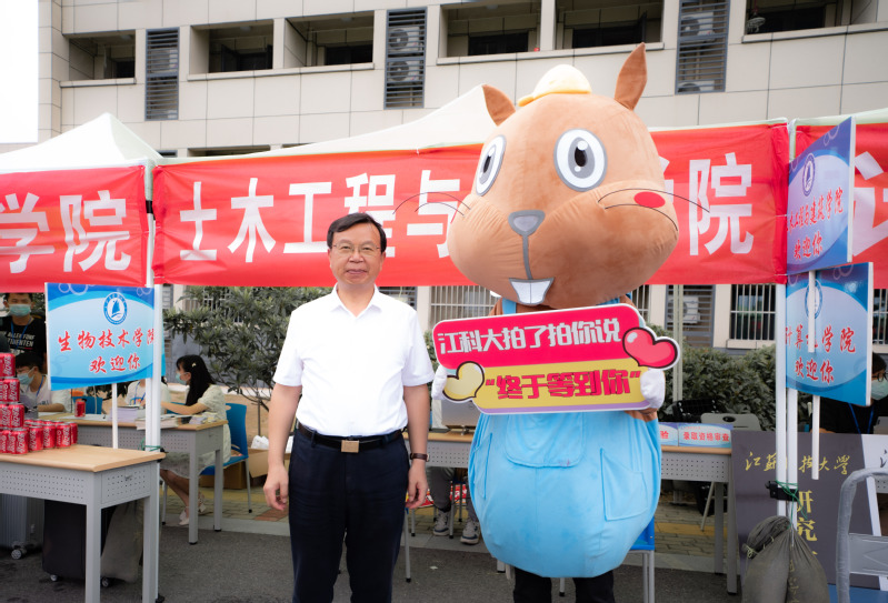 周校长在从长山校区校门口前往新生报到处的路上,遇到一位带着很多行李站在路边的男生,关切地询问他要去何处,得知他是正要去办理报到手续的2022级博士新生,立马热情地帮他把行李带到目的地去。一路上,顶着细雨,大家一起拉着行李,亲切地话起家常。这位来自盐城的博士新生陆祖成表示,其实自己已经算是江科大的“老人”了,硕士就读于江科大土木专业,博士就读于江科大船海专业,美丽的校园、亲切的老师、热情的同学,像回老家一样,一切都是熟悉的感觉!