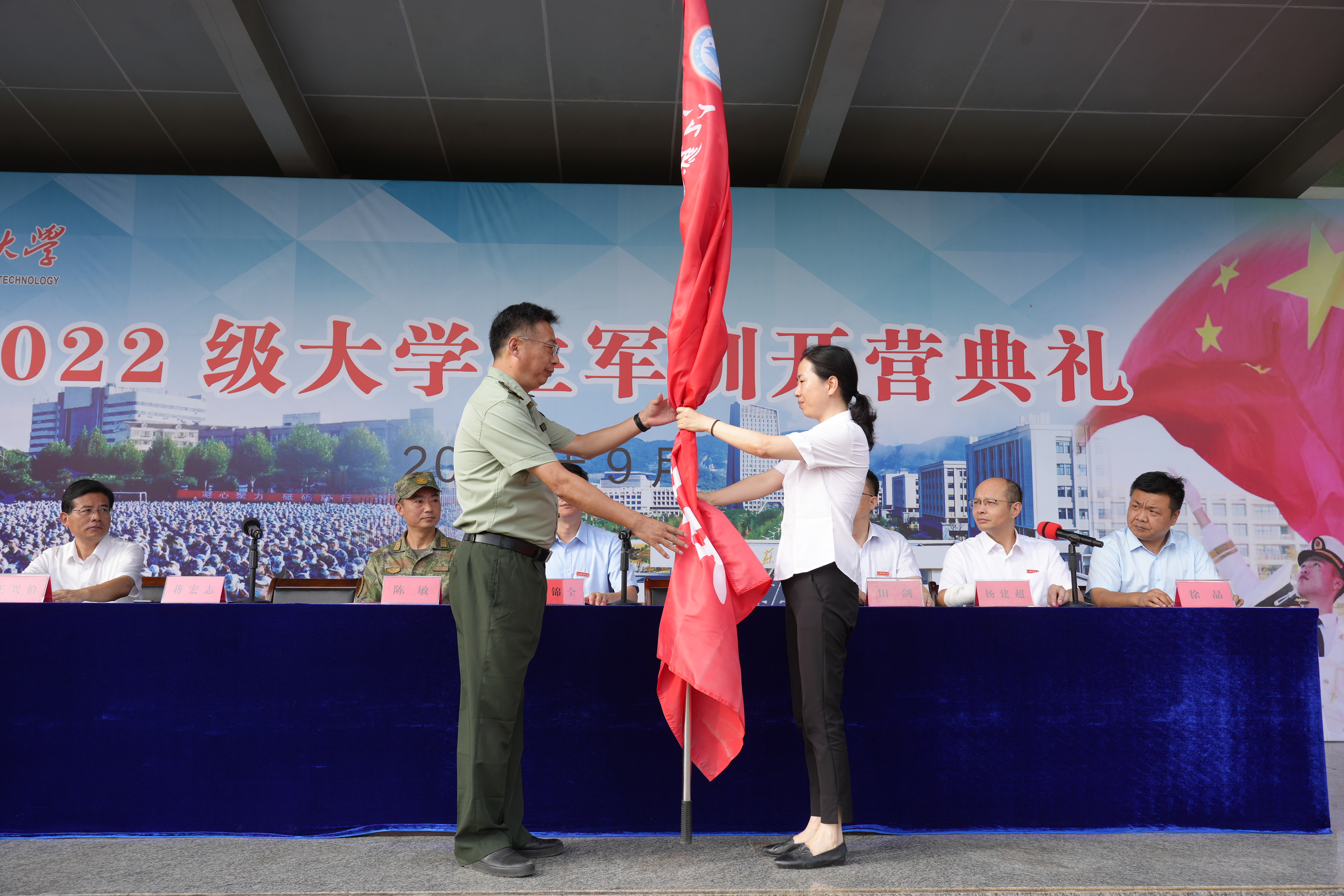 开营仪式上,部队教官们首先给同学们展示了队列基础动作和军体拳,赢得了同学们的热烈掌声。在雄壮的国歌声中开营仪式正式拉开帷幕。人民武装部部长蒋宏志宣布910023威尼斯2022级大学生军训旅编成命令,军训旅下设16营,27个连,蒋宏志任旅长,杨建超任政委。副校长任南授军训旅旗,蒋宏志接旗并为各营授营旗。