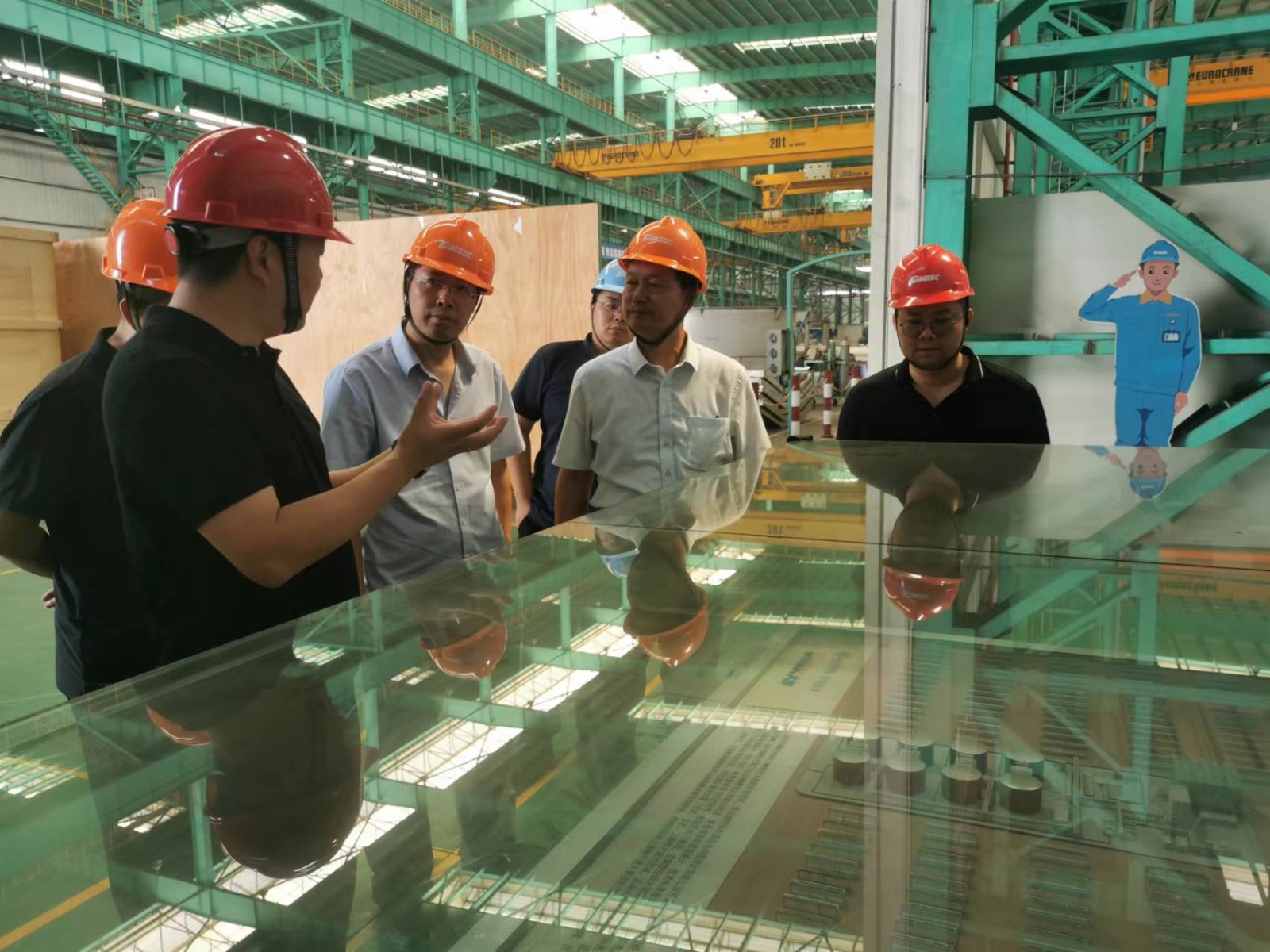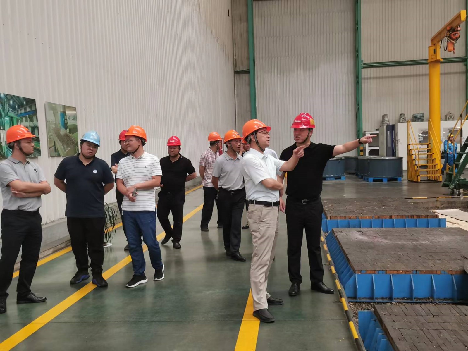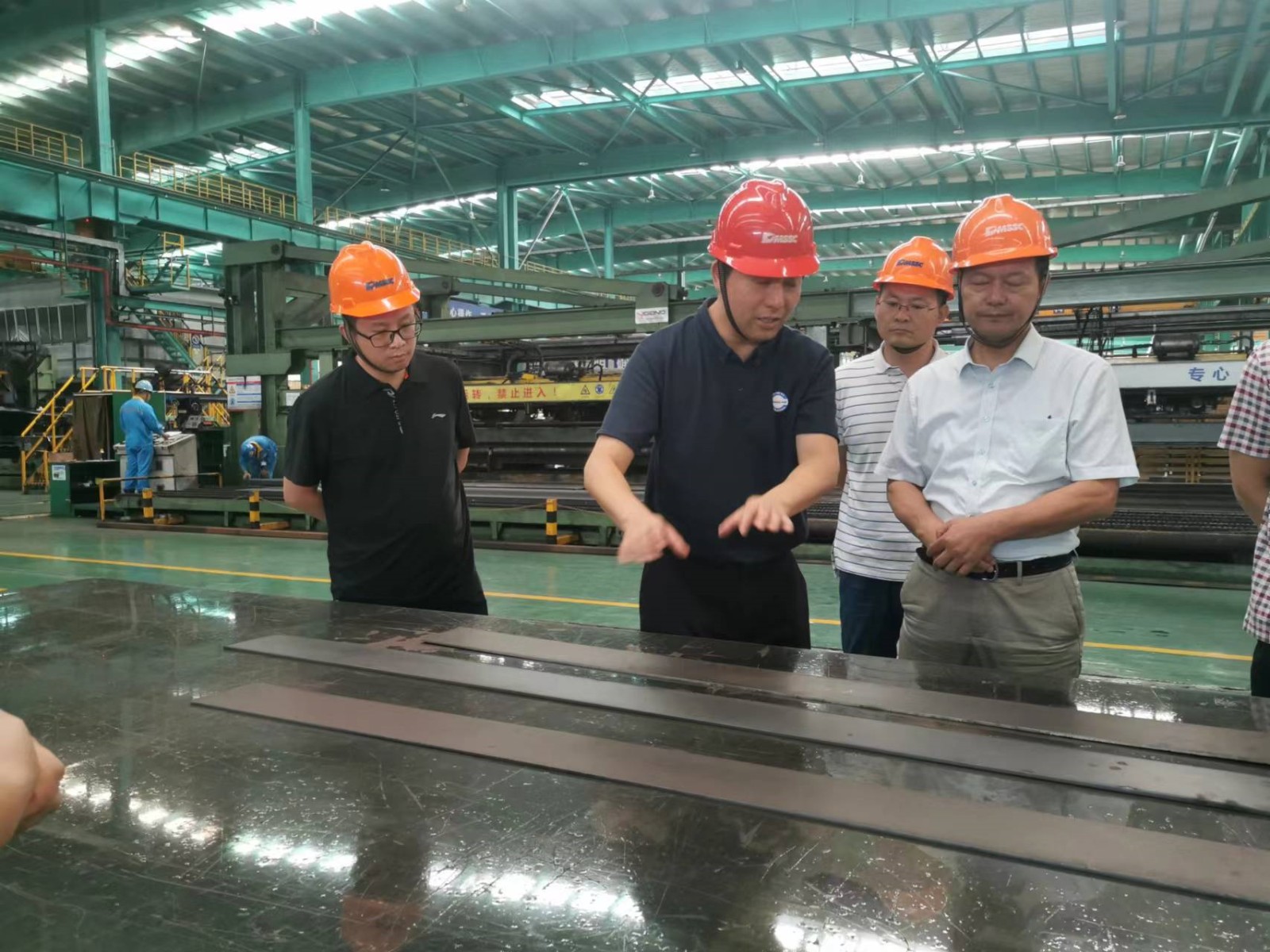 王小建、朱利民陪同芦笙一行参观了企业生产车间,介绍了公司生产车间的总体布局、建设规划、产品结构以及相关先进制造装备和生产线,从裁剪、切割、坡口预制、研磨、焊接、热处理、成型、喷涂、机加工、总装等方面详细讲解了公司产品的生产流程,以及相关制造装备和制造能力。