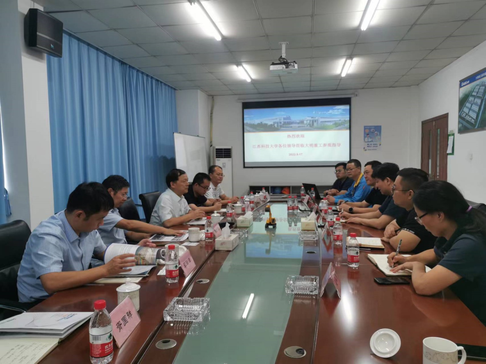 9月17日,材料学院院长芦笙,副院长李瑞峰、陈书锦、王宇鑫,新材料及先进焊接技术研究院常务副院长胥国祥,以及焊接系、材料成形系、金属材料系等相关院系负责人和骨干教师赴江苏大明重型装备制造有限公司调研交流。大明国际控股有限公司总裁办公室主任、生产技术总监王小建,公司总经理朱利民、副总经理陈义,总工程师曾朝明、焊接主管瞿桂芹等热情接待。