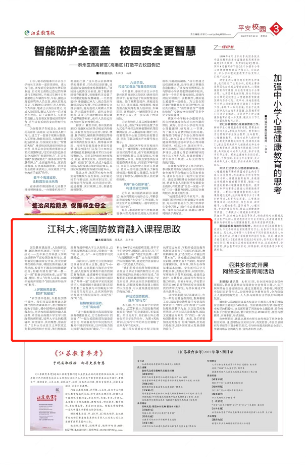 江苏教育报2022年9月23日平安教育第三版http://epaper.jsenews.com/Article/index/aid/7087679.html