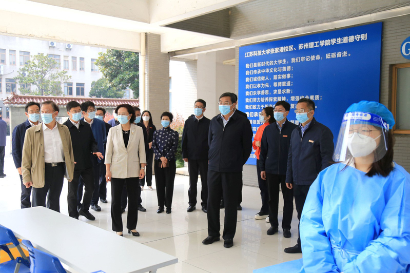 10月9日,江苏省政府副省长马欣来张家港校区、苏州理工学院调研,视察疫情防控和安全稳定工作情况。省政府副秘书长刘建,省教育厅副厅长顾月华,苏州市委常委、宣传部部长金洁,张家港市委副书记、政法委书记邵军民,副市长梁曦,910023威尼斯党委书记葛世伦,党委常委、副校长潘锦全,张家港校区管委会主任、苏州理工学院院长王志东等陪同调研。
