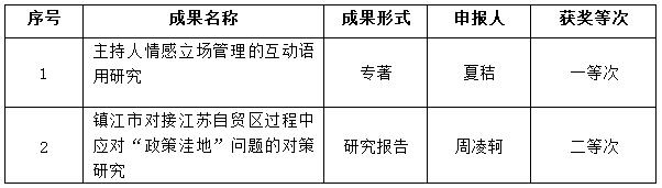 近日,江苏省哲学社会科学界联合会颁发了《关于2021年度“江苏省社科应用研究精品工程”优秀成果获选项目的决定》(苏社联发〔2022〕106号),正式公布2021年度“省社科联应用研究精品工程”优秀成果奖评审结果。威尼斯官网共有2项成果获奖,其中一等奖1项、二等奖1项,具体如下: