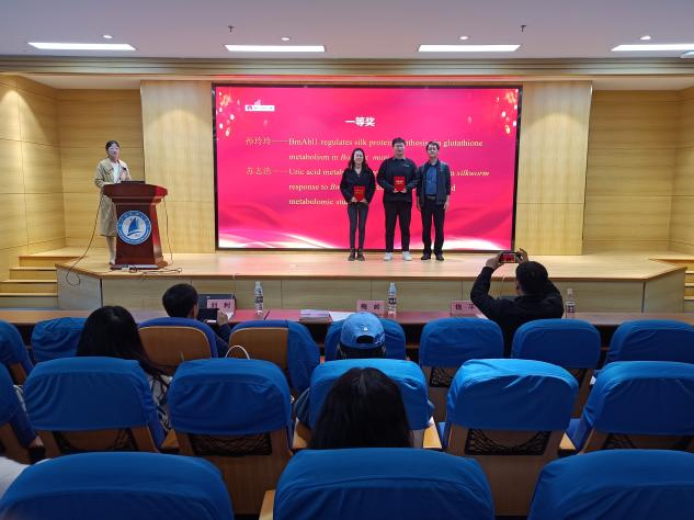 论坛以学生汇报、交流提问的形式展开。获得一等奖的硕士研究生苏志浩在报告中指出,他的研究课题“尿酸代谢促进家蚕细胞凋亡应答BmNPV侵染的机制研究”,通过研究尿酸代谢抑制BmNPV增值可能为蚕病防治提供新的思路。今后,他还将继续在家蚕病理学领域开展深入研究,努力践行把论文写在祖国大地的光荣使命。