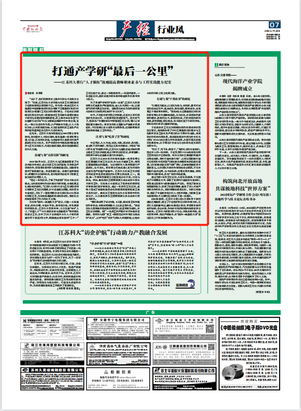 为了贯通产学研的“最后一公里”,江苏科大的青年博士们走进生产制造现场、走入技术研发一线,让接地气的研究真正扎住根,逐渐茁壮成长为服务国家重大战略和区域经济发展的“参天大树”。