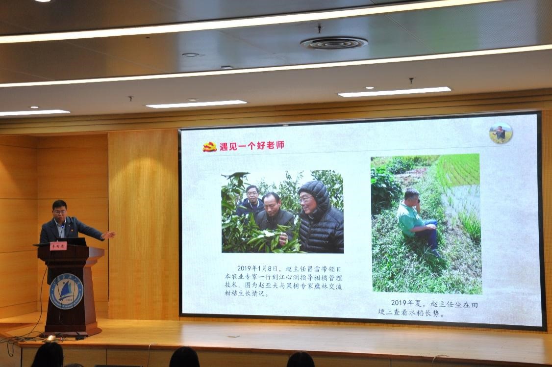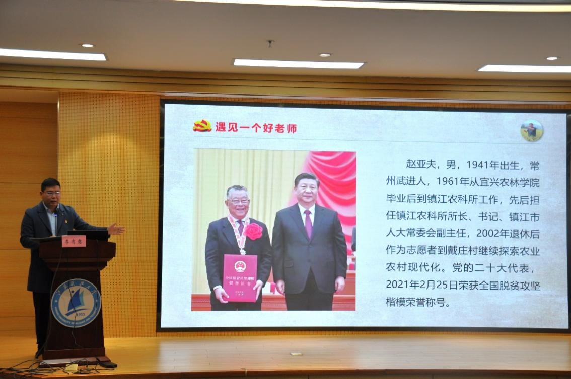 李有意是“江苏青年五四奖章集体”青年代表、团江苏省委青年典型谈乡村振兴代表。他结合自身经历,分别从“遇到一个好老师”“拥有一个多彩的生活”“找到一个好地方”三个内容向同学们分享了自己投身于乡村振兴数年间的所思所感。李有意以“遇到一个好老师”为主题向同学们介绍了他的老师、党的二十大代表——赵亚夫。李书记表示,正是在“开拓进取、不懈奋斗,坚定信念、忠诚于党,情系群众、一心为民,开拓进取、不懈奋斗,淡泊名利、无私奉献”的“亚夫精神”指引下,他从一名不懂农事的青年蜕变成为一名熟知农业知识和农业技术的青年驻村干部。同时,他希望江科大新时代青年们继续把这份伟大的精神传承下去,把论文写在祖国大地上,做到扎根基层、情系群众、一心为民,走在乡村振兴的第一线。