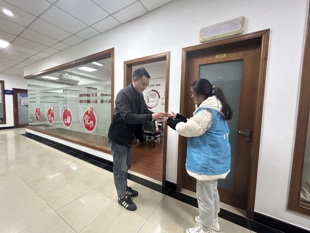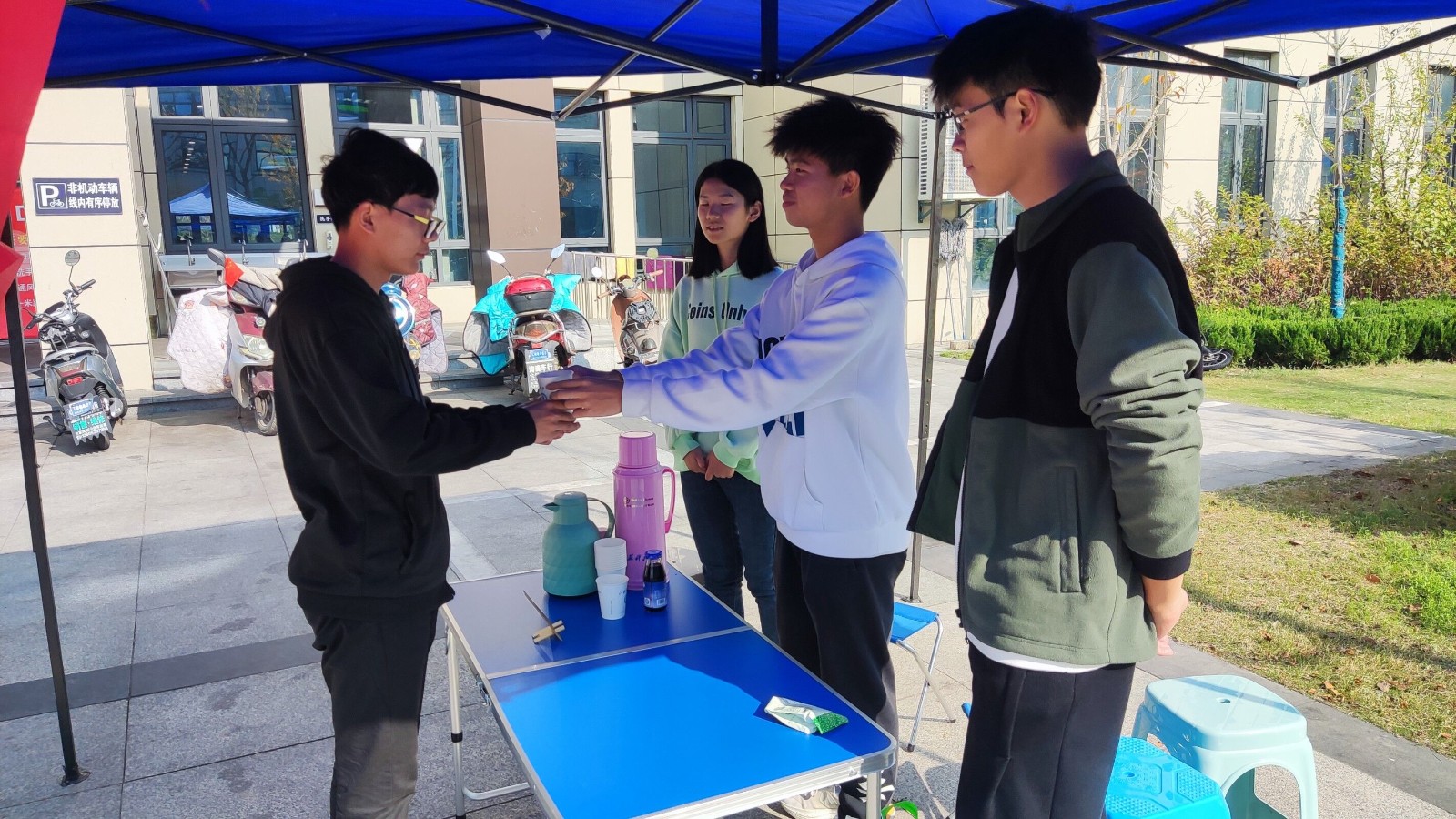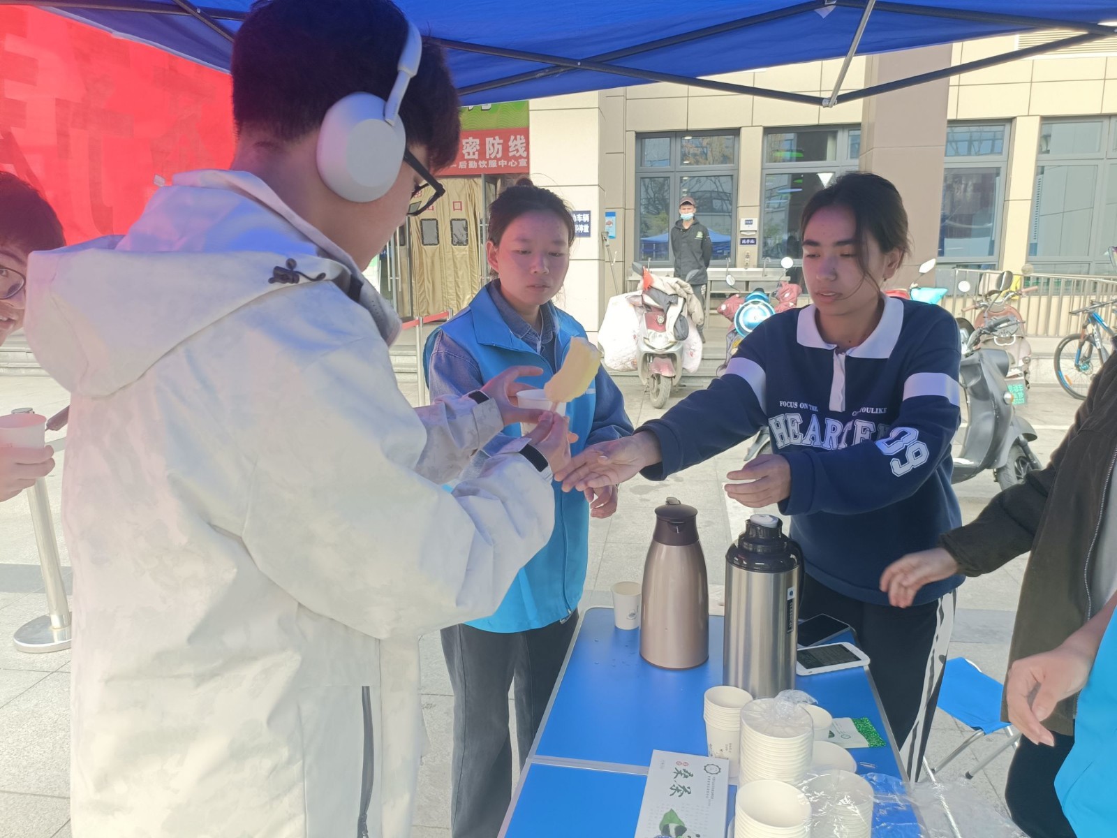 义工站干事带领义工们走进长山校区的学院楼、食堂、宿舍楼和图书馆,向周末仍坚守在工作岗位上的老师及工作人员送上一杯温暖的桑叶茶,向他们送去问候。义工站在东食堂、西食堂设点,为来来往往的同学们送上温热的桑叶茶,递上爽口的桑葚汁,向同学们送上一份冬日里的祝福。温热的桑茶像一阵阵暖风,吹遍梦溪校园的每一个角落。同学们感激的神情、温情的话语使冬日的校园涌动着生机与希望。
