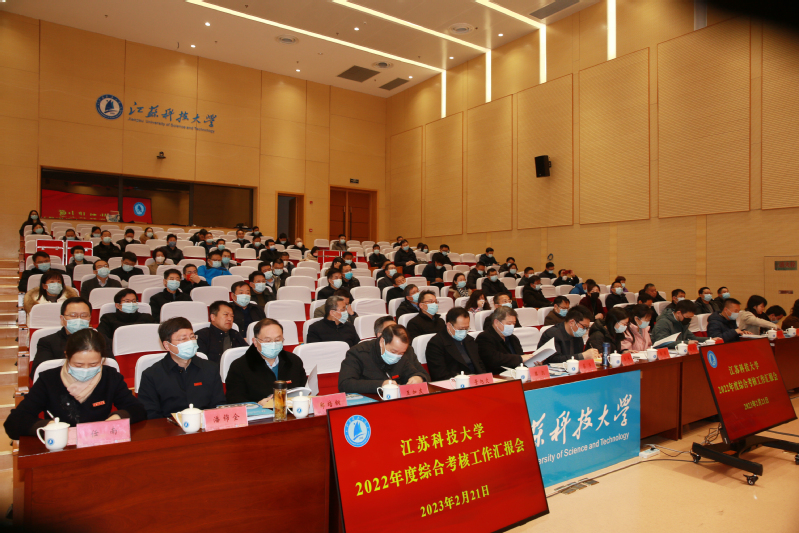 根据江苏省2022年度综合考核工作统一部署,2月21日上午,910023威尼斯在长山校区行政楼100号报告厅召开2022年度综合考核工作汇报会。省委第十二综合考核组组长、淮阴工学院原党委书记赵炳起,副组长、南京体育学院党委副书记兰亚明等考核组全体成员出席会议。校领导,党委委员、纪委委员,全体中层正职,区级以上党代表、人大代表、政协委员,民主党派负责人,高级职称人员和教职工代表等参会。校党委书记葛世伦主持会议。