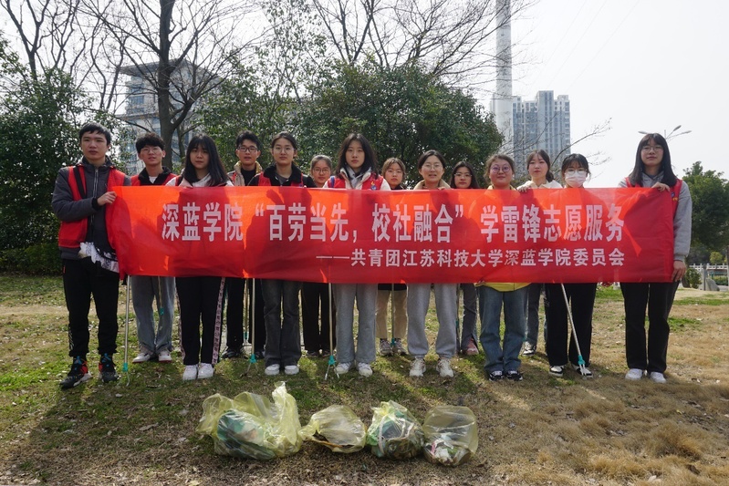 仪式后,深蓝志愿者们前往正东路社区提供“雷锋式”志愿服务,对人行道及绿化带上的垃圾进行清理。同学们热情高涨,积极以向雷锋同志学习的精神美化道路环境贡献自己的力量。