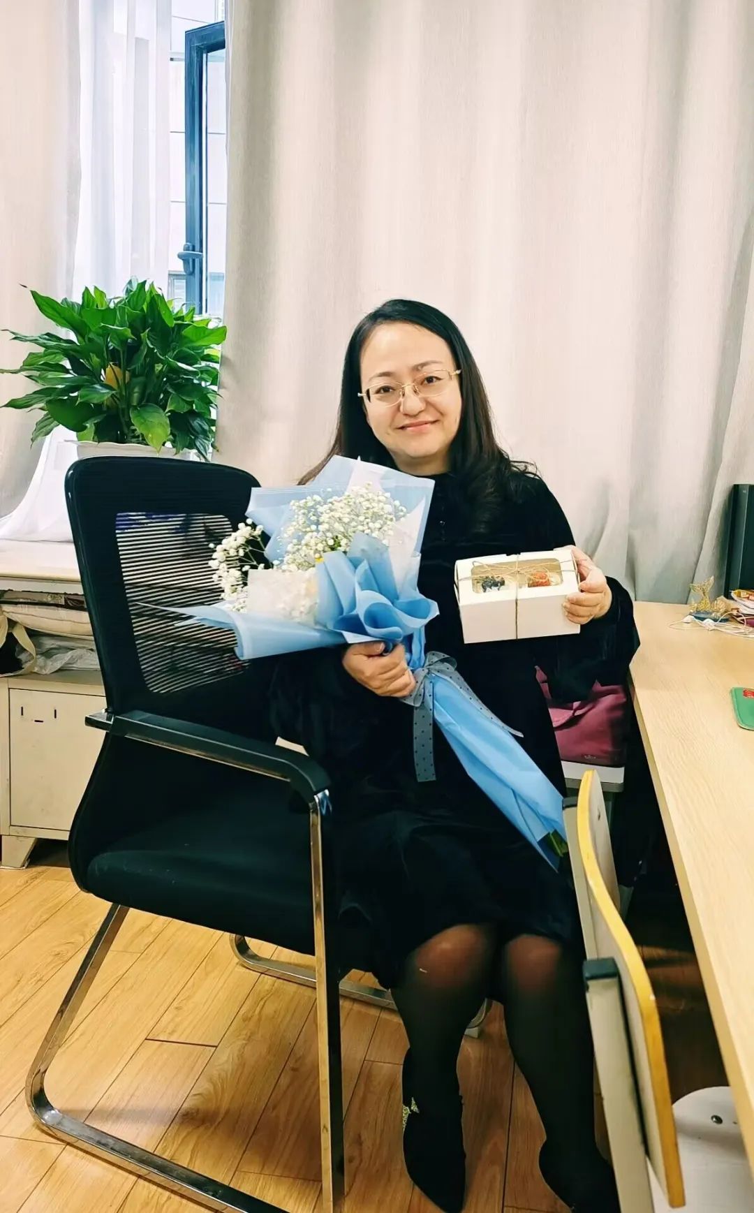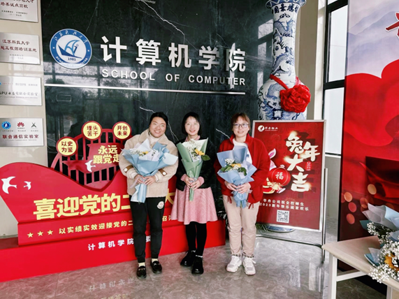 计算机学院在学院楼一楼大厅开展三八妇女节节日慰问活动,学院为每位女教师安排了一束鲜花、一盒小甜品蛋糕,寓意春暖花开、甜甜蜜蜜、工作顺利,借此机会感谢学院女教师们为学院高质量发展做的突出贡献。