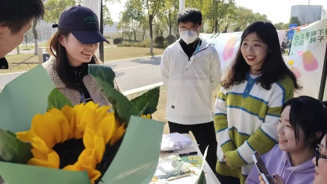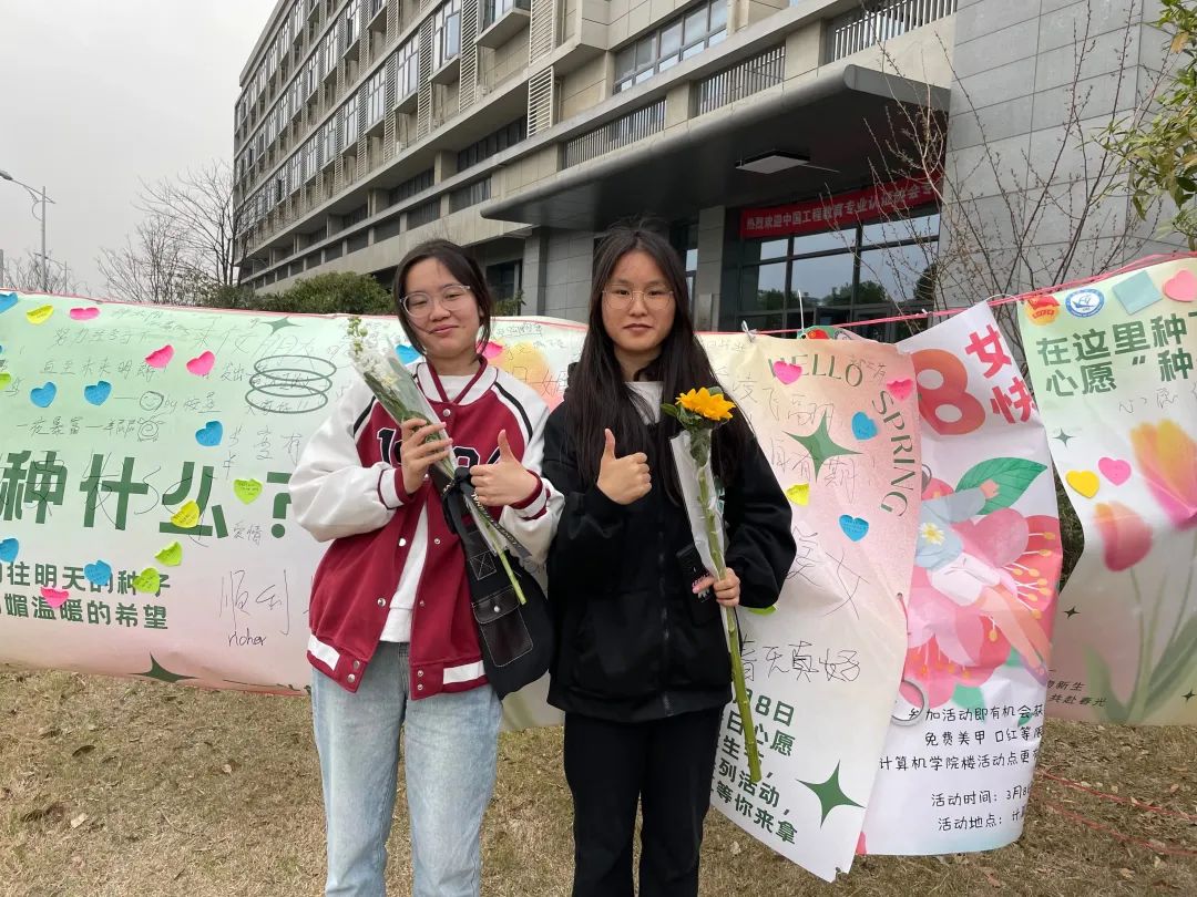 活动期间,计算机学院团委的同学引导每一位参与活动的同学在留言板上留下自己对未来的希望、对亲朋好友的诚挚祝福、对学校的美好祝愿,并为参与活动的老师与教工送上鲜花。