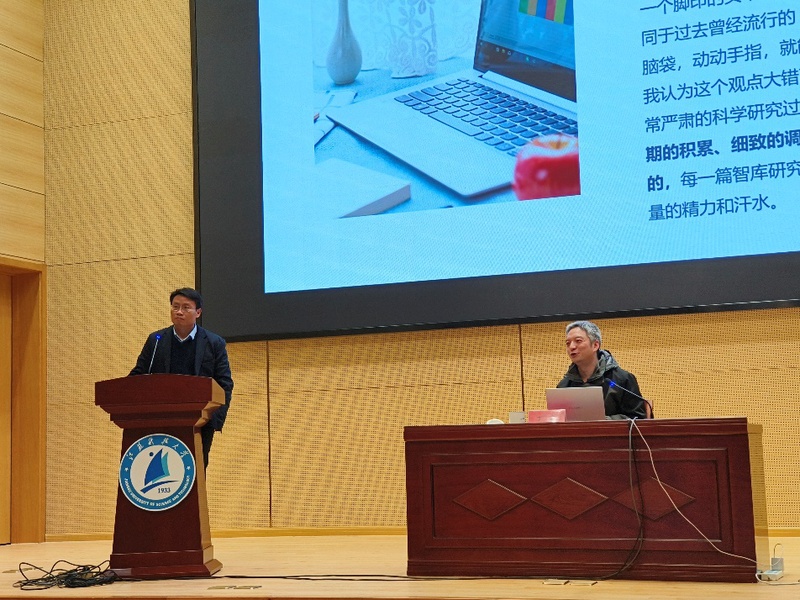 打造具有江科大特色的新型智库是推进威尼斯官网哲学社会科学繁荣发展计划的重要组成部分。为进一步提升智库研究报告质量,3月17日,威尼斯官网特邀南京信息工程大学江北新区(自贸区)发展研究院执行院长、江苏省社科院二级研究员丁宏教授,以“提高智库决策咨询服务能力的经验分享”为题进行专题讲座,分享决策咨询报告撰写经验。校级研究中心所有成员、各文科学院相关教师及职能部门人员参加本次讲座,人文社科处负责人孟庆良教授主持。