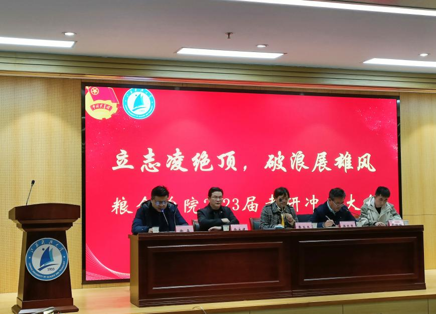 学院从大一开始便注重做好考研宣传动员,引导学生积极联系导师早进实验室、早进课题组、早进科研团队,邀请校内外粮食领域专家做讲座,访谈优秀考研学子等。始终将研究生考试作为加强学风建设的重要抓手,不断提升人才培养质量,把考研工作作为推动学生实现高层次就业的重要途径。