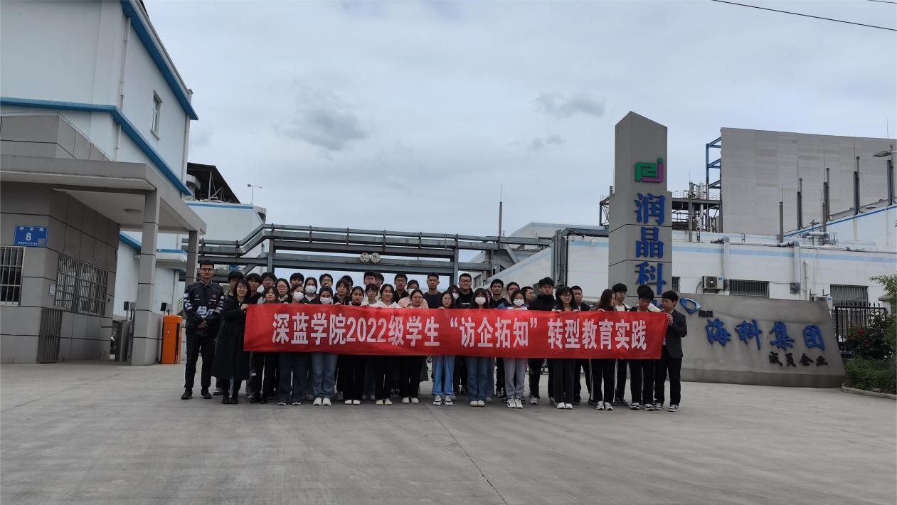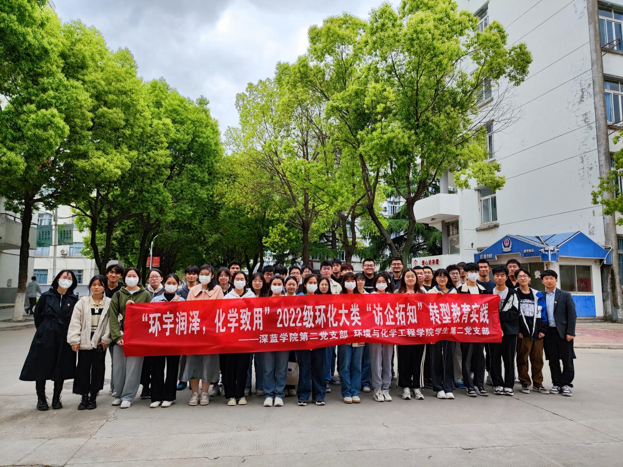 为贯彻落实深蓝学院转型教育“知行合一”的教育理念,搭建校企交流平台,引导学生利用理论知识指导实践,拓宽学生学业生涯和职业生涯规划视野,4月24日下午深蓝学院第二党支部和环境与化学工程学院学生第二党支部组织40余名新生走进镇江润晶高纯化工有限公司开展“环宇润泽,化学致用”2022级环化大类“访企拓知”转型教育实践活动。本次活动由环境与化学工程学院党委副书记王召征带队,深蓝学院环化类辅导员王萌、张威和润晶公司安全部、生产部多位工作人员带领学生参观工厂生产线,了解显影液(TMAH)从原料到成品的整个生产过程。