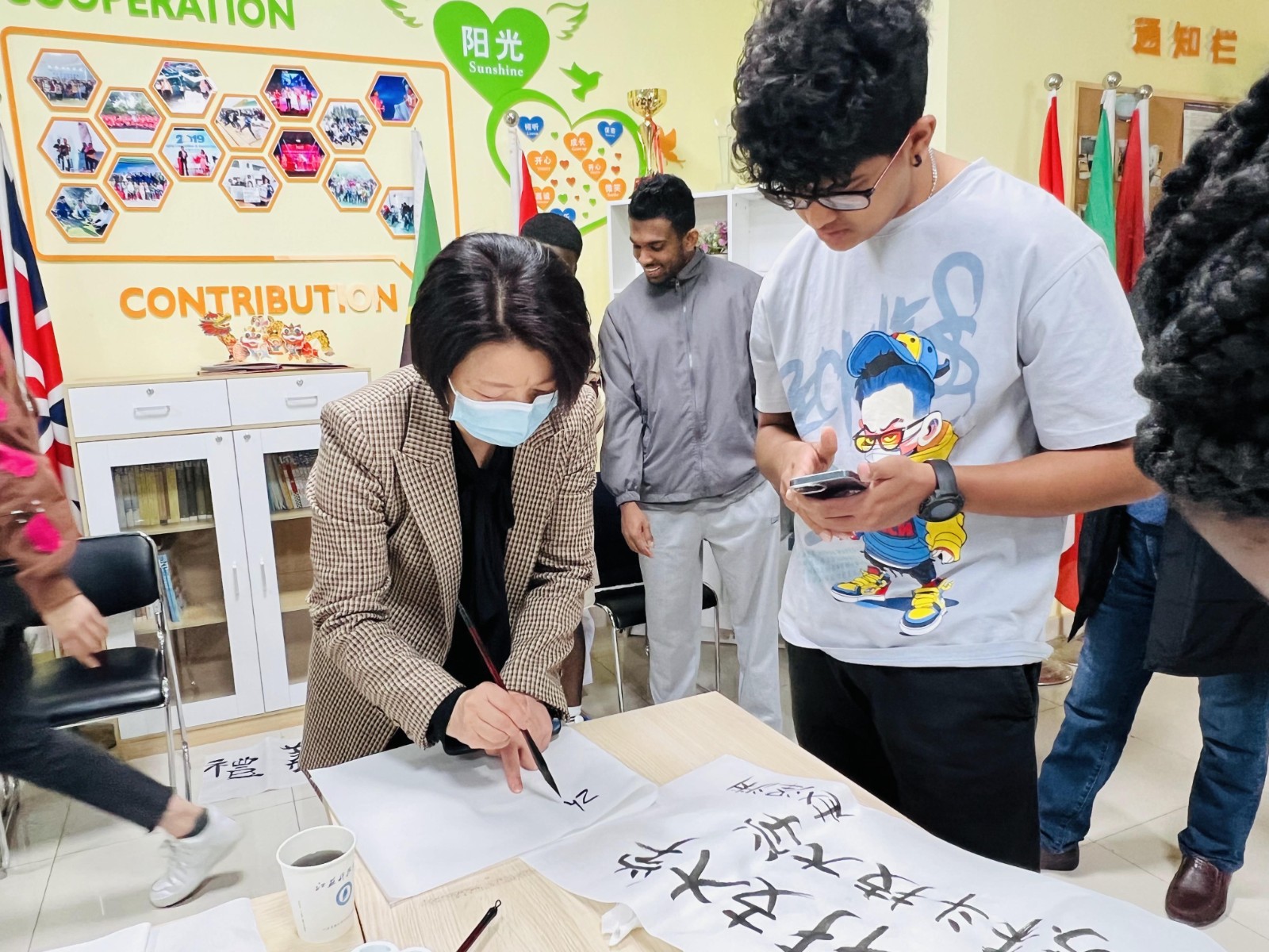 以坚定文化自信为使命担当,以讲好中国故事为远大目标。此次留学生体验中国书法活动致力于让留学生更好地读懂中国,了解中华传统文化,从而进一步能够做中华优秀传统文化的传播者。留学生纷纷表示,能有幸亲历910023威尼斯办学九十周年庆典,用中国最传统的表达方式抒发自己对母校的情怀和依恋,是非常难忘的人生体验,并表示将做好中外文化使者,讲好中国故事,传播中华文化,秉承“船魂”精神,共写绚烂篇章。