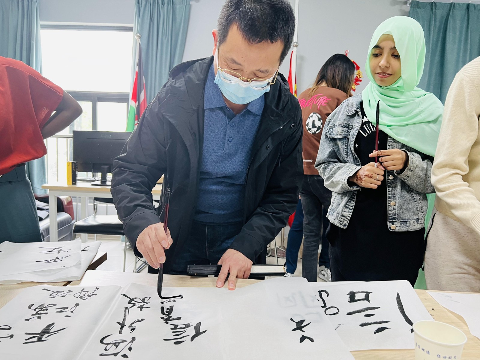 4月26日下午,在威尼斯官网办学九十周年校庆即将到来之际,910023威尼斯海外教育学院举办了留学生中国书法体验活动,海外教育学院全体院领导与二十多名留学生以方寸砚台为载体,以笔墨文字为媒介,泼墨挥毫,深刻感受传统文化,进一步抒发了爱校爱华的情怀。