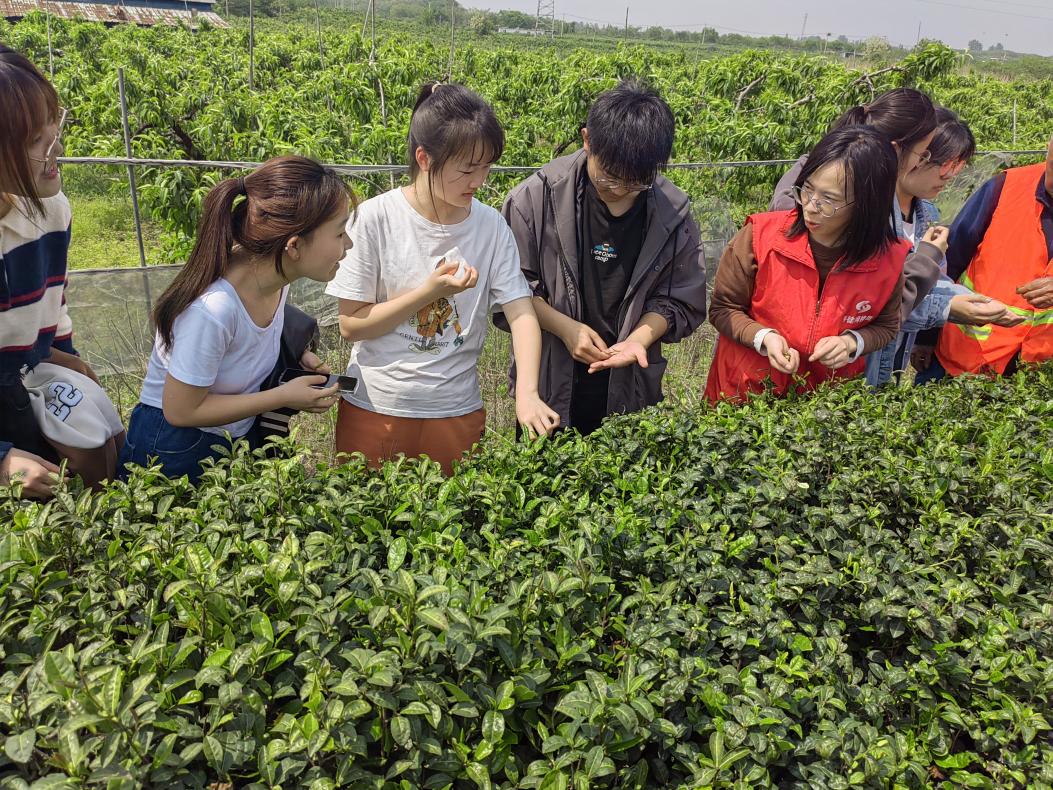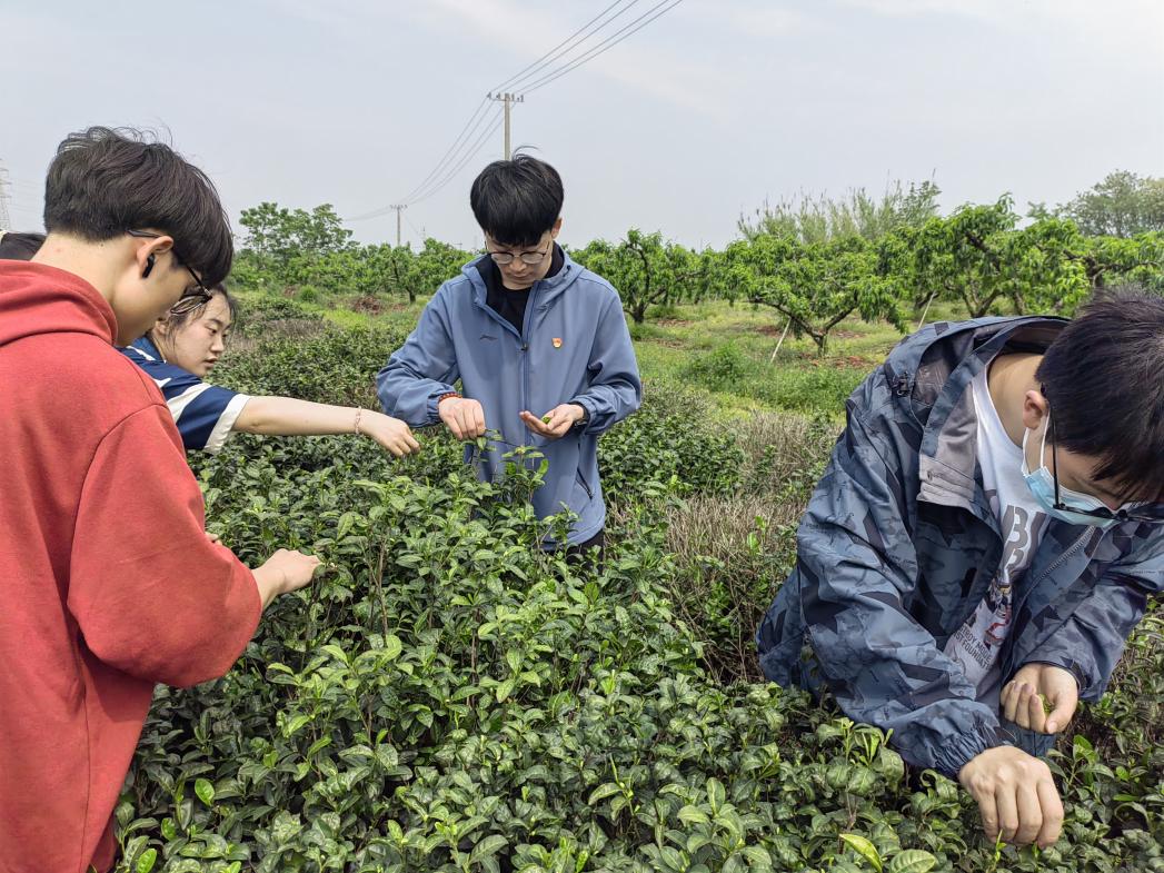 采茶环节中,同学们跻身绿意盎然的茶园中,认真学习茶农们采摘茶叶的“秘诀”。采茶时,同学们穿梭在茶树间,谨记茶农教授的“一芽一叶”,专心致志地寻找合适的嫩芽,小心翼翼地“掐尖”后放进茶篮,又不厌其烦地找寻下一片翠绿。同学们也在这种新奇有趣的重复中,深切体会到了农民伯伯的不易和志愿活动的意义所在,同时,也对中国的茶文化有了更深层次的理解。