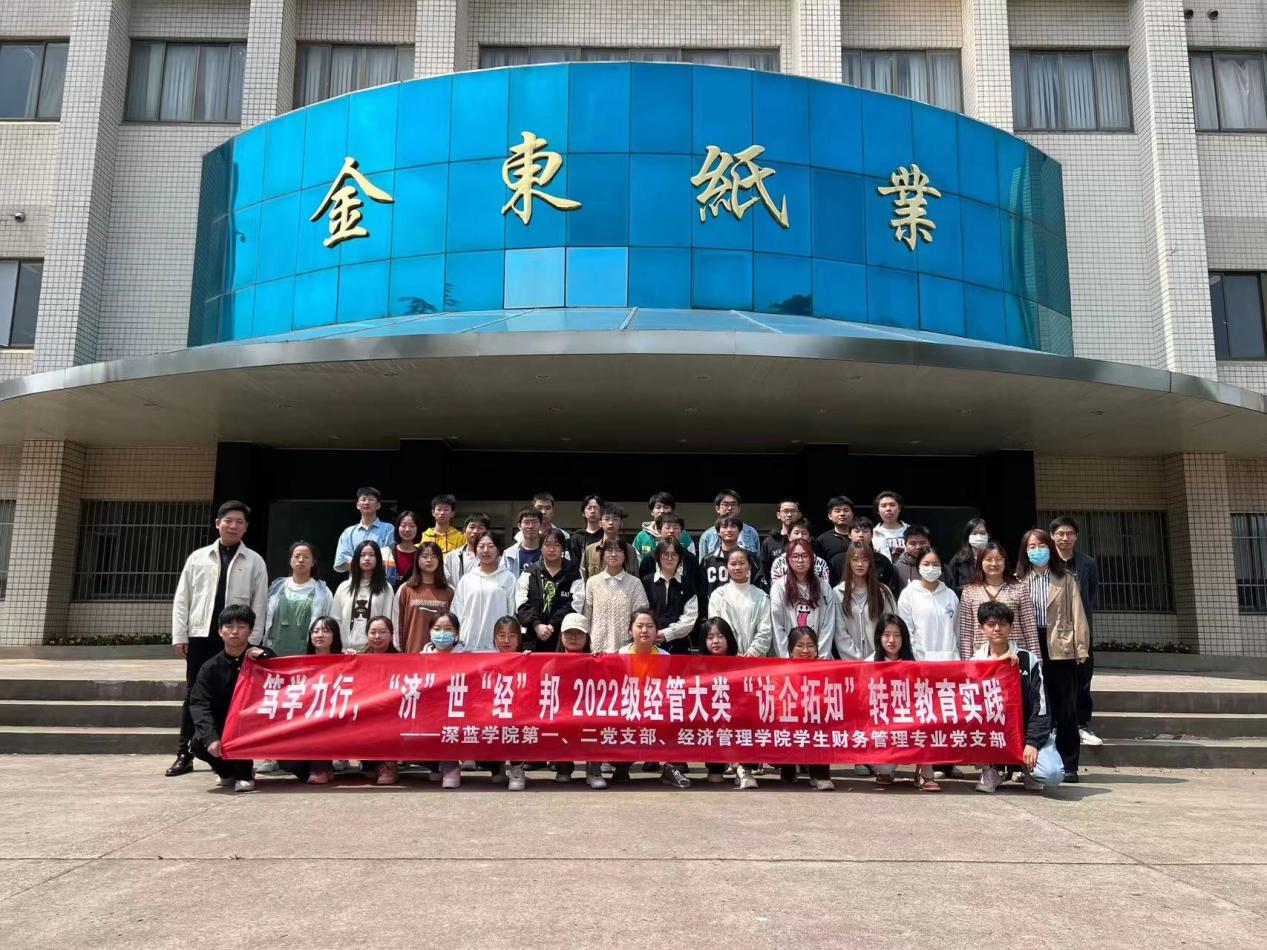 为贯彻落实深蓝学院转型教育“知行合一”的教育理念,搭建校企交流平台,帮助学生拓宽学业生涯和职业生涯规划视野,深蓝学院第一、第二党支部和经济管理学院学生财务管理专业党支部组织40余名新生走进江苏金东纸业有限公司,开展“笃学力行,济世经邦”2022级经管大类“访企拓知”转型教育实践活动。本次活动由深蓝学院第一党支部书记杜伟伟带队,深蓝学院经管类辅导员老师狄浩、王丽瑞、施玮玮及经济管理学院叶桥键陪同实践。金东纸业文宣处李翔老师向师生介绍了金东纸业展厅情况和造纸的整个生产过程,并实地参观了三号机生产全线。