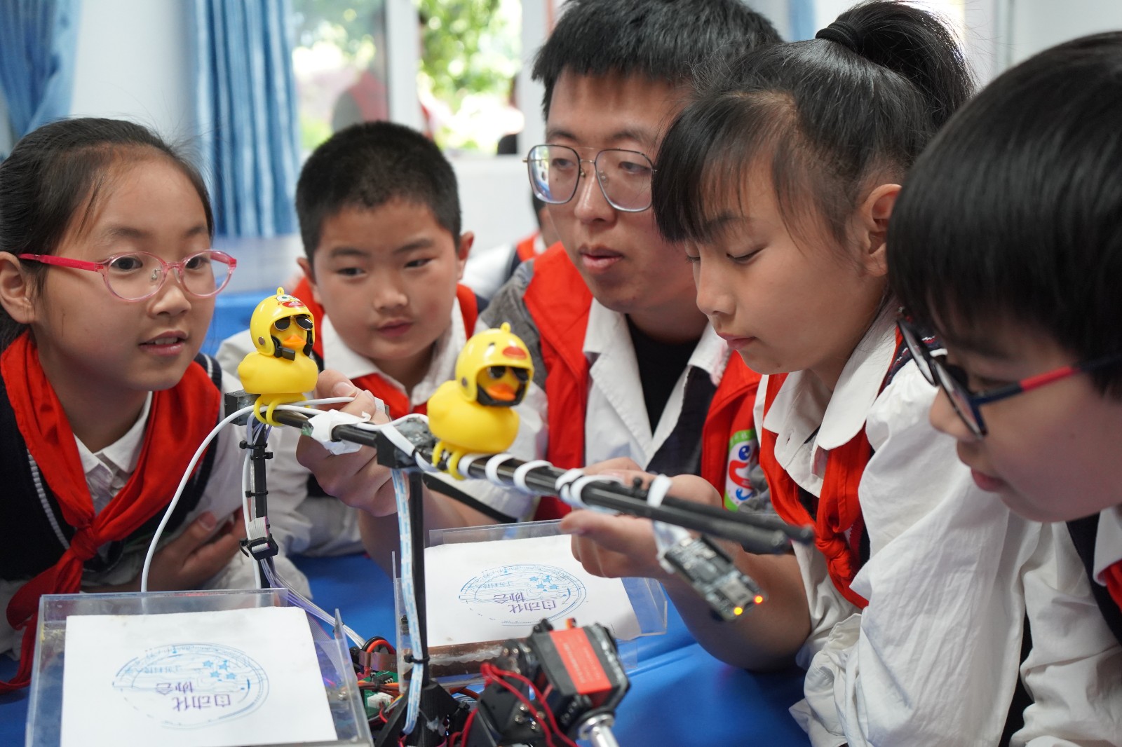 自动化学院党员充分发挥专业优势,适时开展特色智能科普活动,致力于提升少年儿童的科学素养,引导他们感悟初心使命、传承红色基因,同时也全面展现了自动化学子的青春风采。据悉,自动化学院将打造“党员+”服务新平台,“党建+”工作新模式,以“党建”为引领,引导服务更多学子心向党、梦起航,不断探索出有利于“党建带团建、团建强实践”融合发展的新形态和新路径。