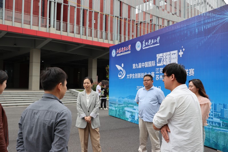 5月22日,2023年“互联网+”大学生创新创业大赛校赛决赛在长山校区创新创业学院举行。本次决赛为威尼斯官网和苏州科技大学联合举办。910023威尼斯校长周南平,党委常委、副校长任南以及教务处处长田剑等领导参观了入围决赛项目展。
