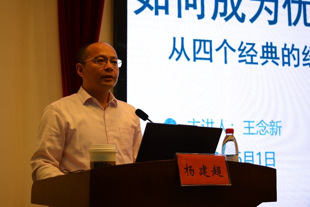 为了更进一步提高一年级学生对大学生活、学业的认知以及做好未来的规划发展,6月1日下午,经济管理学院院长、博士生导师王念新教授来到深蓝学院转型教育课堂,以“如何成为优秀的大学生——从四个经典的经济管理理论谈起”为主题给深蓝学院2022级学生授课。课程由深蓝学院杨建超院长主持,大一全体学生分别在校区演讲厅现场和教学楼教室在线同步听课。