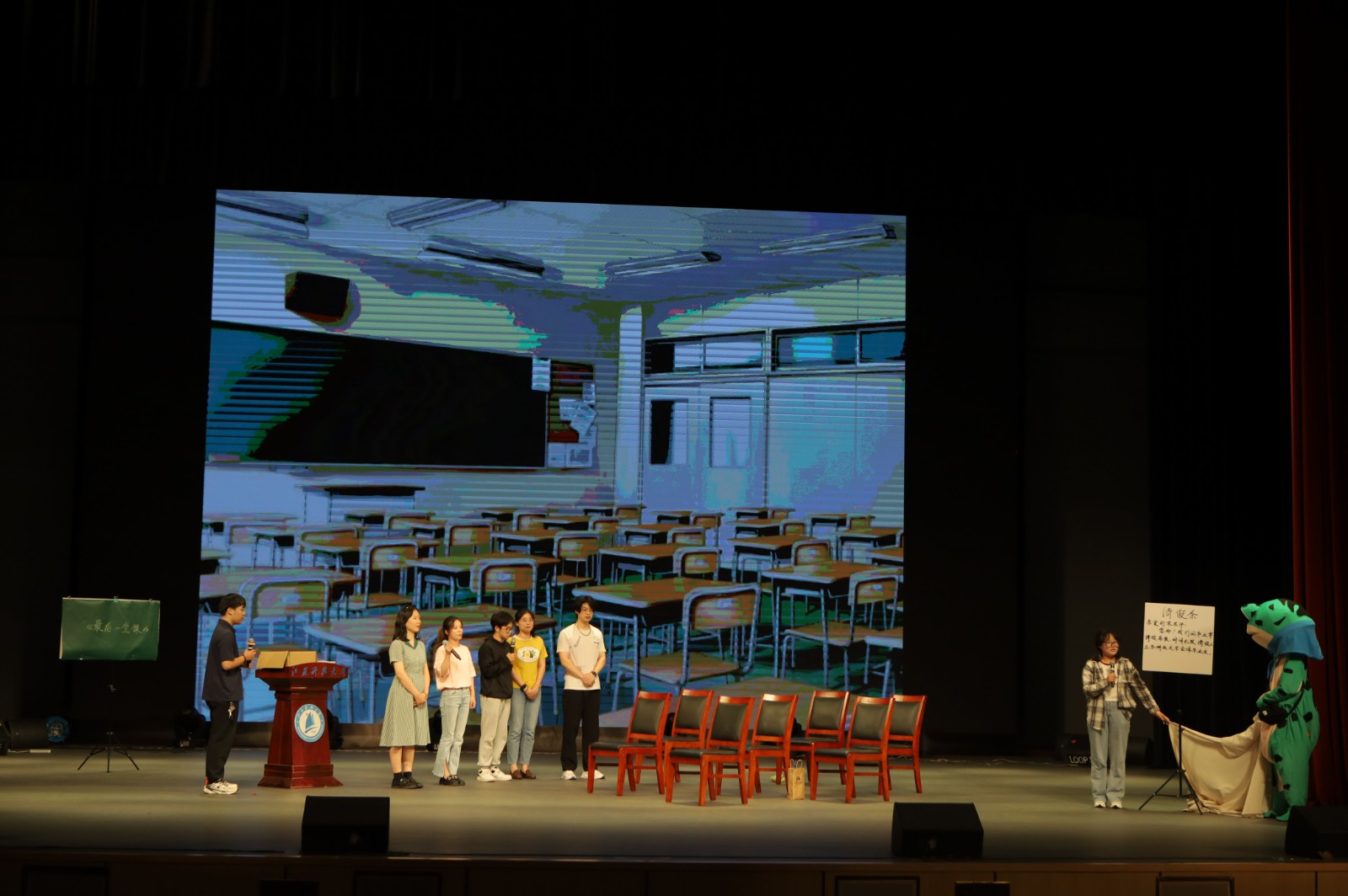 海洋学院的光影剧表演《忆往昔 道别离 待重逢》正如其名,我们如今互道别离,可是终究还会有“人生何处不相逢”的那一日。《向洒满阳光的世界出发》鼓励每一个向阳而生的人;理学院师生表演的小品《最后一堂课》,通过诙谐幽默的剧情让观众感受真挚纯粹的师生情谊。