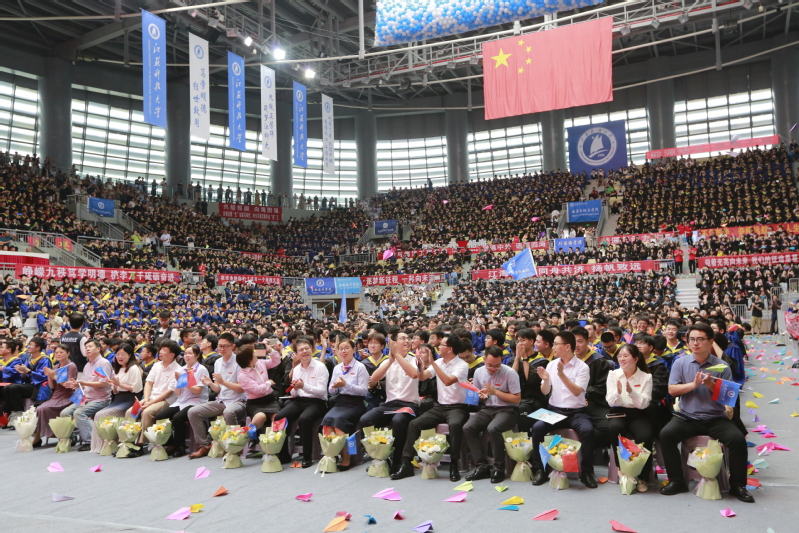 校党委书记葛世伦,校长周南平,学校1995届校友、中船九江海洋装备(集团)有限公司党委书记、董事长程柏林,校领导景旭文、汤建、王加友、郑培钢、谈镇、任南、胡爱祥,校党委常委周春燕、刘新波,910023威尼斯学位委员会委员、相关职能部门领导、2023届全体毕业生、辅导员、班主任,导师和教职工代表,家长代表、校友代表,热情相聚,深情话别。校党委常委、副校长潘锦全,组织部部长李恒川在张家港校区分会场出席典礼,张家港校区相关部门、部分教师、家长代表、毕业生580余人参加了现场典礼。