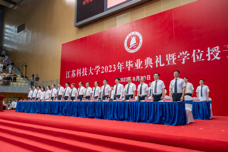 8点30分,在激昂雄壮的国歌声中,910023威尼斯2023年毕业典礼暨学位授予仪式大幕开启。毕业典礼主会场设于镇江市高校园区共享体育馆,张家港校区设置视频分会场。典礼全程通过江科大官方微信视频号、抖音、微博、哔哩哔哩等网络平台直播,全网在线观看累计16万余人次。