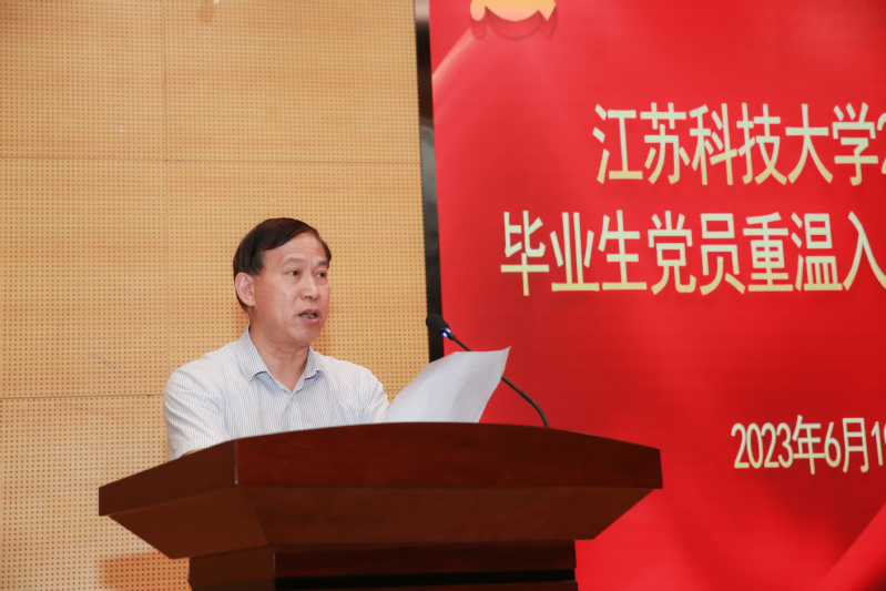 船海学院党委书记、院长张健代表教师党员发言。他希望广大毕业生党员继续牢记党员身份,勇敢拼搏,用自己的实际行动为母校增光添彩。