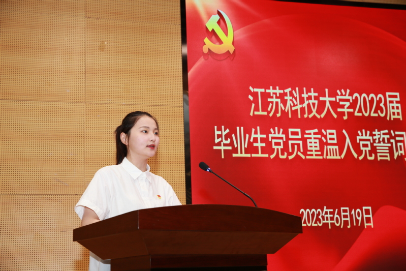 活动在庄严雄壮的《国际歌》声中拉开帷幕。现场,一段回顾学校发展精彩瞬间的短片,再现学校办学90年以来取得的骄人成绩。来自计算机学院2023届毕业生党员代表陈雨在发言中回忆了自己入党的心路历程,并向全体毕业生党员发出倡议:努力弘扬“船魂”精神,用实际行动践行“请党放心、强国有我”的青春誓言。