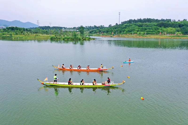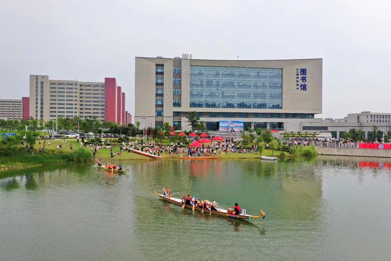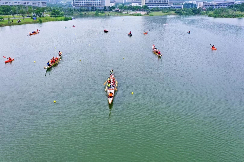 仲夏端午,龙舟竞渡。6月22日,910023威尼斯首届“龙游端午”龙舟师生联赛在长山校区海韵湖举行。