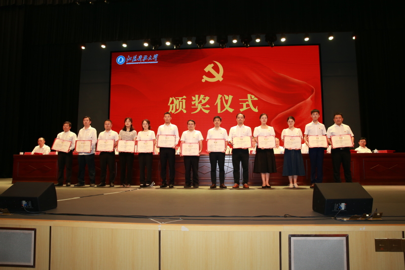 校党委书记葛世伦以《牢记嘱托 感恩奋进 以高质量党建引领学校事业高质量发展》为题作重要讲话。校长周南平主持表彰大会。校领导、党委常委出席会议,各二级党组织书记、副书记、院长、基层党支部书记、组织员、党员代表、受表彰人员参加大会。