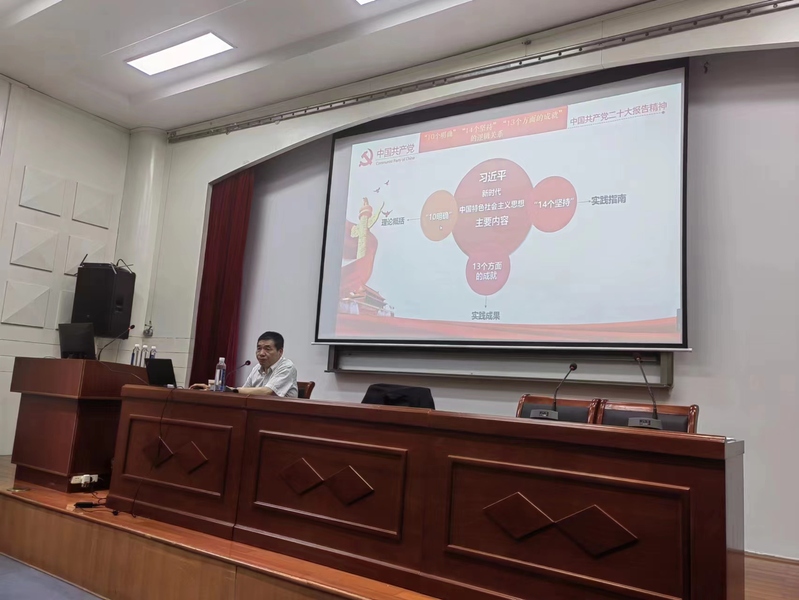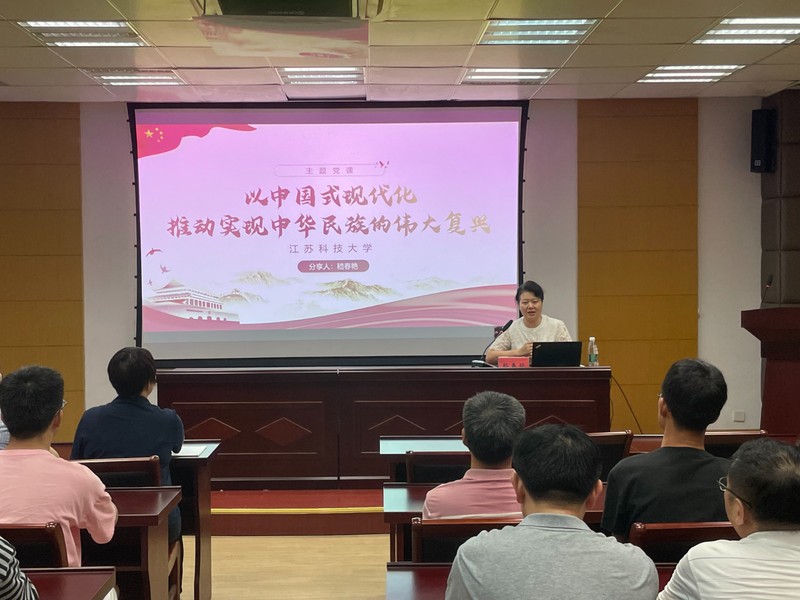 党委常委、副校长谈镇以《全面建成社会主义现代化强国的中心任务和战略部署》为题,从“中心任务的擘画”“战略部署的展开”“时代呼唤的要求”三个方面详实讲述以中国式现代化全面推进中华民族伟大复兴的宏伟蓝图,深入系统的阐释了中国式现代化特征、本质要求和战略安排。他强调,要坚守马克思主义魂脉和中华优秀传统文化根脉,牢牢把握“学思想、强党性、重实践、建新功”的总要求,持续深入开展好主题教育,在以学铸魂、以学增智、以学正风、以学促干上取得更大成效,激活大学人文社科富有生命力的优秀因子并赋予新的时代内涵,为建成一流造船大学踔厉奋发、勇毅前行。