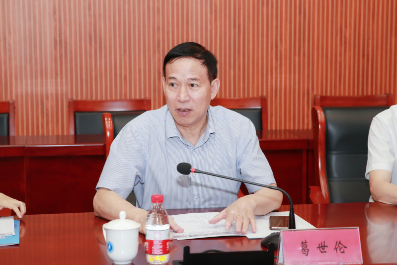 葛世伦对中船集团多年来给予学校高质量发展的支持和帮助,以及在新校区建设方面的支持,表示衷心感谢。他重点介绍了学校全力推进多学科交叉研究和人才培养,推动政产学研融合发展,在优化学科专业布局、复合应用型人才培养、涉海科研平台建设、关键核心技术创新等方面取得的阶段性成果和发展情况。葛世伦强调产教融合是学校开启高质量发展的重要战略,学校希望与中船集团携手深化校企合作,在共建协议的框架下围绕产业人才需求,优化学校学科专业布局,共同推动应用型人才培养改革。他表示学校在专业建设、学科发展等方面与中船集团产业发展相契合,希望双方进一步在海洋人才培养、核心技术攻关、科研平台建设等方面加强合作、协同发展,希望中船集团在人才招聘、企业导师培养、各类项目合作等方面给予江科大更具体更优惠的政策扶持。