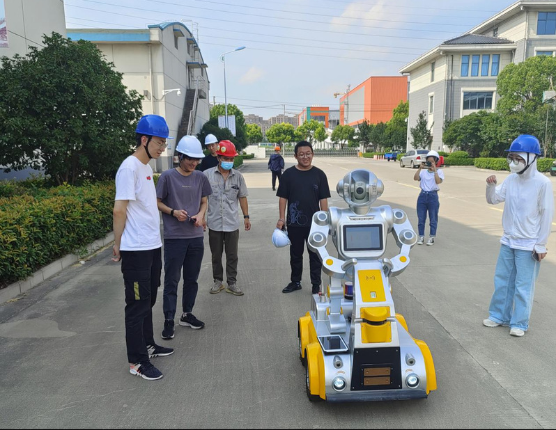 实践团成员学习仓储巡逻机器人控制。