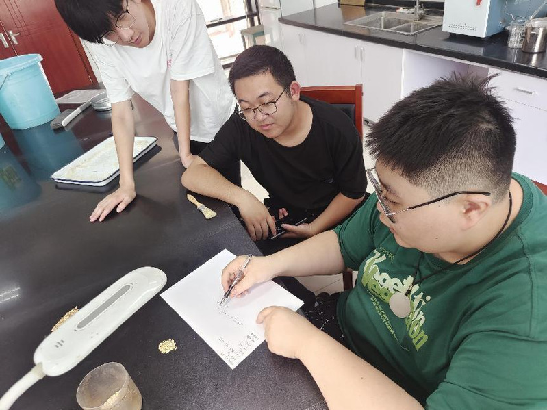 科技加持下的收储工作也离不开过硬的业务水平。在洪泽湖收储库,实践团成员在化验员的指导下体验了利用扦样器取样,分辨并分捡出样品中存在的不完善粒和杂质并进行计算。这项工作充分考验化验员能否在高强度的验收工作中以同样的责任心,同样的验收标准对每一批入库粮食进行检验。仓管科科长夏海滨向实践团成员们强调“认真定等,把好粮食质量关,维护企业和售粮户利益,保证国家储备粮质量,是一名国储库化验员的神圣职责。”