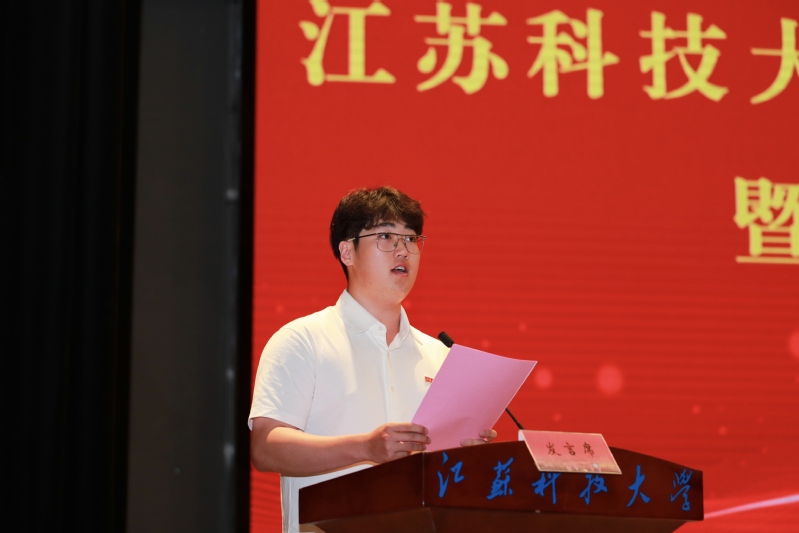 船舶与海洋工程学院的李金澄同学代表全体江科大学子,向所有老师致以诚挚的敬意与节日祝福。他说道,“作为江科大学子,我们会在老师的辛勤栽培下,坚定理想信念,锤炼品德修为,练就过硬本领,在新时代激扬青春、挥斥方遒,忠诚践行请党放心、强国有我的青春誓言。”