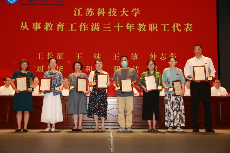 在庄严的国歌声中,大会拉开帷幕。校党委书记周南平主持大会;校党委副书记汤建宣读《江苏省总工会关于表彰2023年省五一劳动奖和省工人先锋号的决定》《关于表彰镇江市模范职工之家、模范职工小家、优秀工会工作者、优秀工会之友和十佳模范职工之家、十佳模范职工小家、十佳优秀工会工作者的决定》《关于表彰镇江市三八红旗手、镇江市三八红旗集体的决定》《关于命名“镇有一手”科技创新女党员示范岗的通知》《关于表彰2022-2023学年优秀教师、优秀教育工作者和先进集体的决定》《关于表彰从事教育工作满三十年教职工的决定》;校党委常委、副校长胡爱祥宣读《关于表彰2022-2023学年优秀辅导员、优秀班主任和优秀学业导师的决定》,在全场热烈的掌声中,与会领导为受表彰的先进集体和个人代表颁奖。