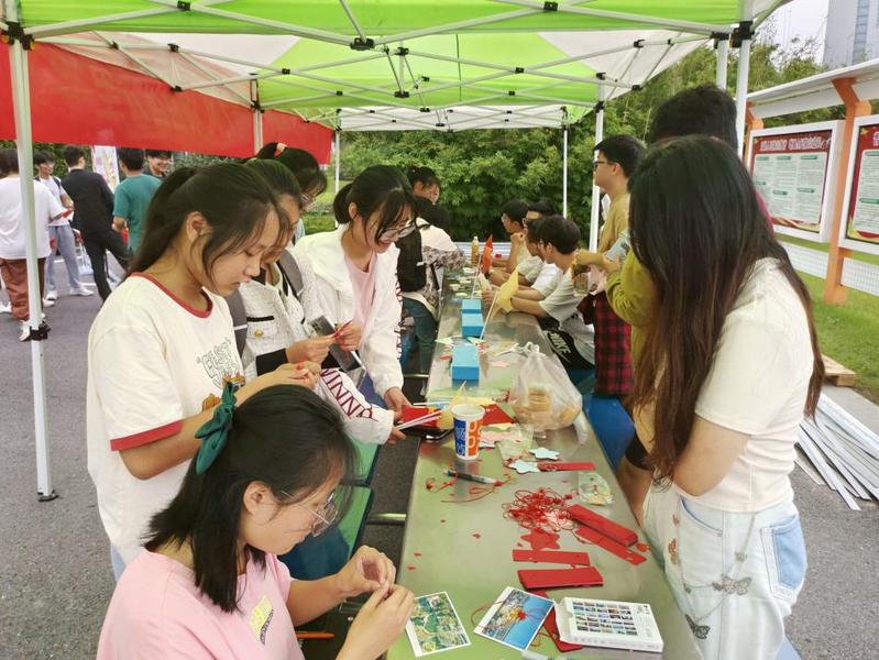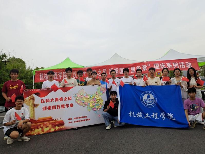 秋风送爽,丹桂飘香。为庆祝中华人民共和国成立74周年,弘扬以爱国主义为核心的民族精神,激发同学们的爱国热情,丰富大学生课余生活,机械工程学院于9月28日中午,在西苑餐厅东侧开展了“以科大青春之风,颂祖国万里华章”国庆系列活动。