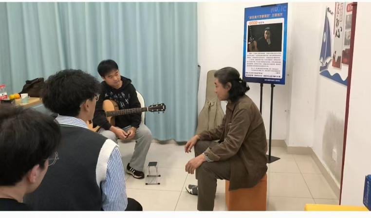 为进一步提升大学生文化艺术修养,不断增强校园文化艺术氛围,10月8日,船海学院在长山校区学生公寓一号楼“蓝途学生社区”举办“音乐使大学更美好”主题沙龙,此次活动特邀嘉宾及主讲人是中国著名古典吉他教育家胡爱华老师,船海学院学生干部及大学生音乐爱好者参加。