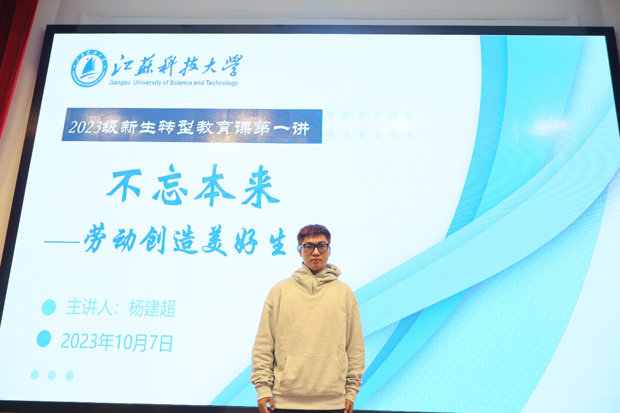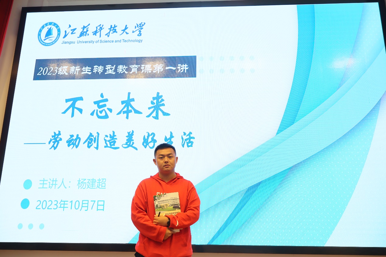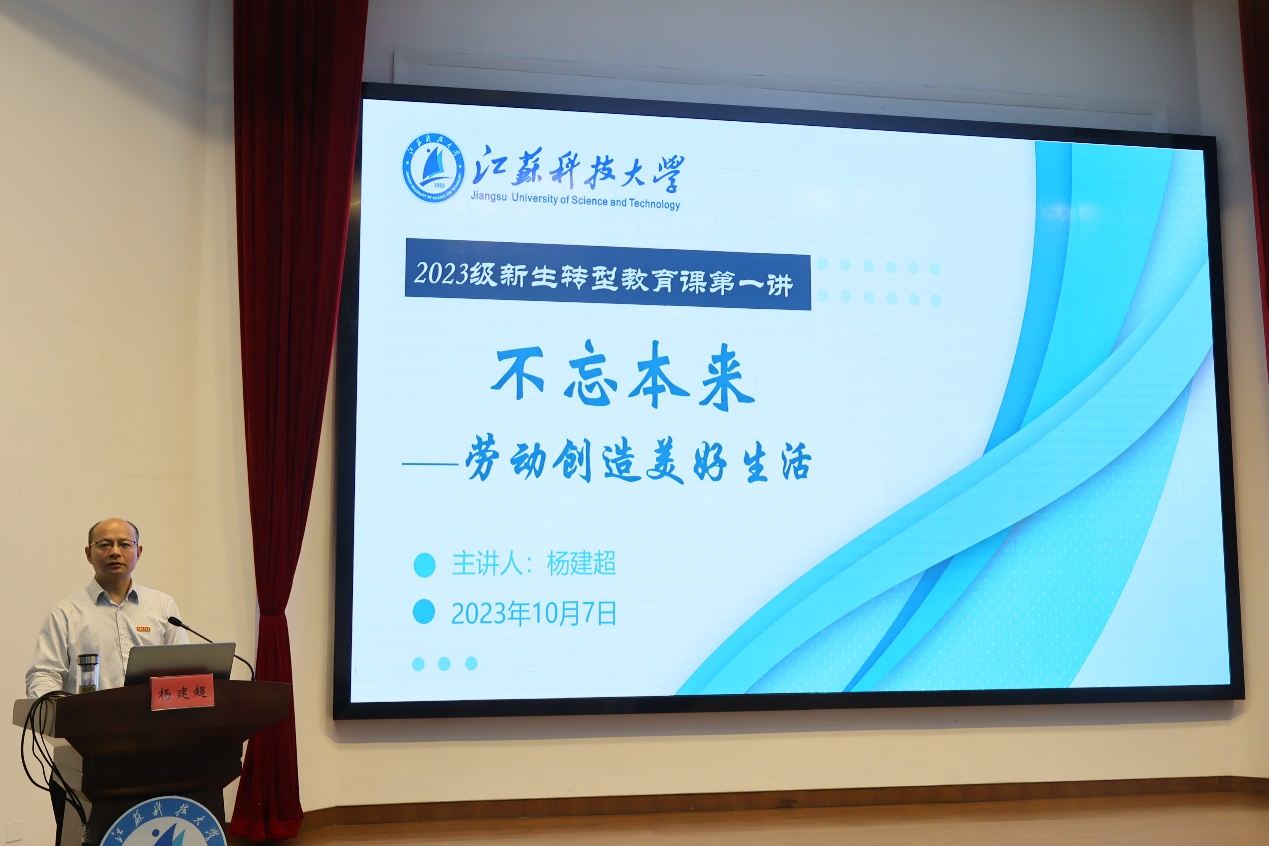 深蓝学院党总支书记、院长杨建超研究员于10月7日下午在梦溪校区演讲厅为2023级新生讲授转型教育主课堂第一讲“不忘本来—劳动创造美好生活”。300余名新生代表在演讲厅主课堂听讲,其余学生和辅导员在分课堂同步学习。