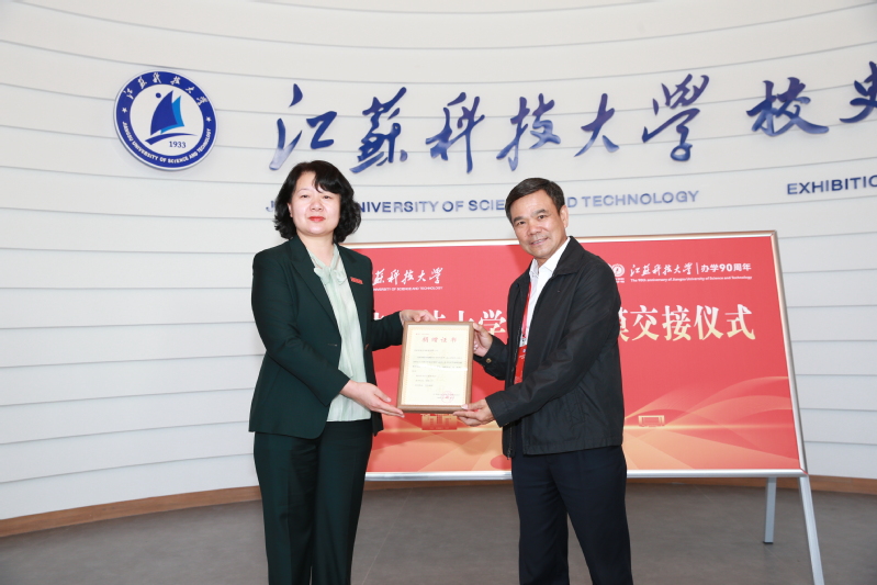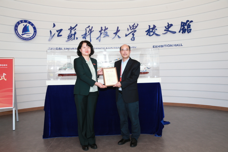 随后,嵇校长分别向捐赠船舶模型的企业代表颁发捐赠证书。