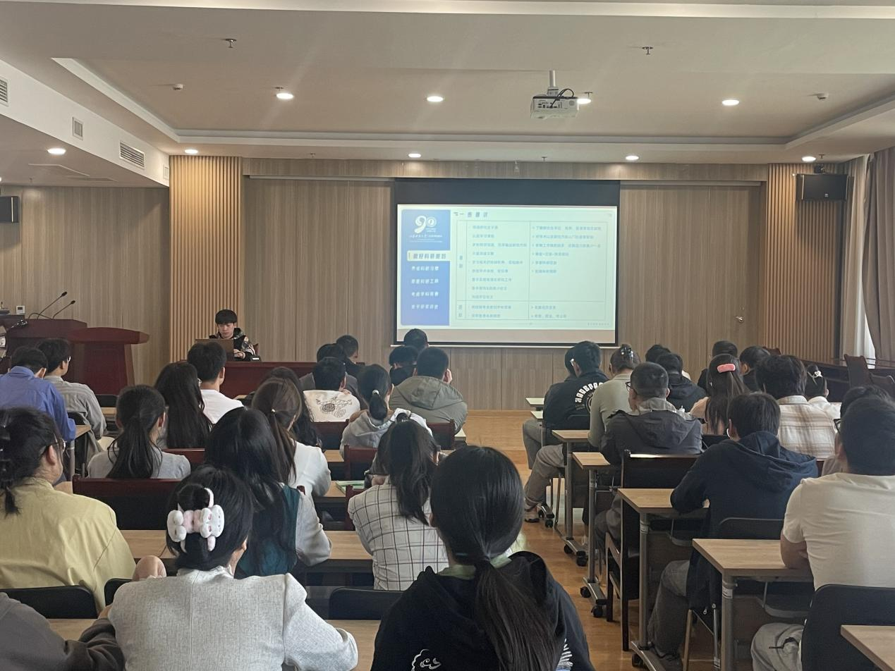 潘玉琪同学则围绕专业课学习、文献阅读、论文撰写、科研计划等方面进行了详细讲解。她表示同学们应多关注课题组相关领域的学术动态,明确自身课题研究目标,系统研学相关知识,养成独立思考的科研习惯。她建议同学们不仅要有研究生阶段的大规划,也得有每个学期的小规划,拒绝拖延,及时把握投稿的各个节点,不断提升,全面发展。