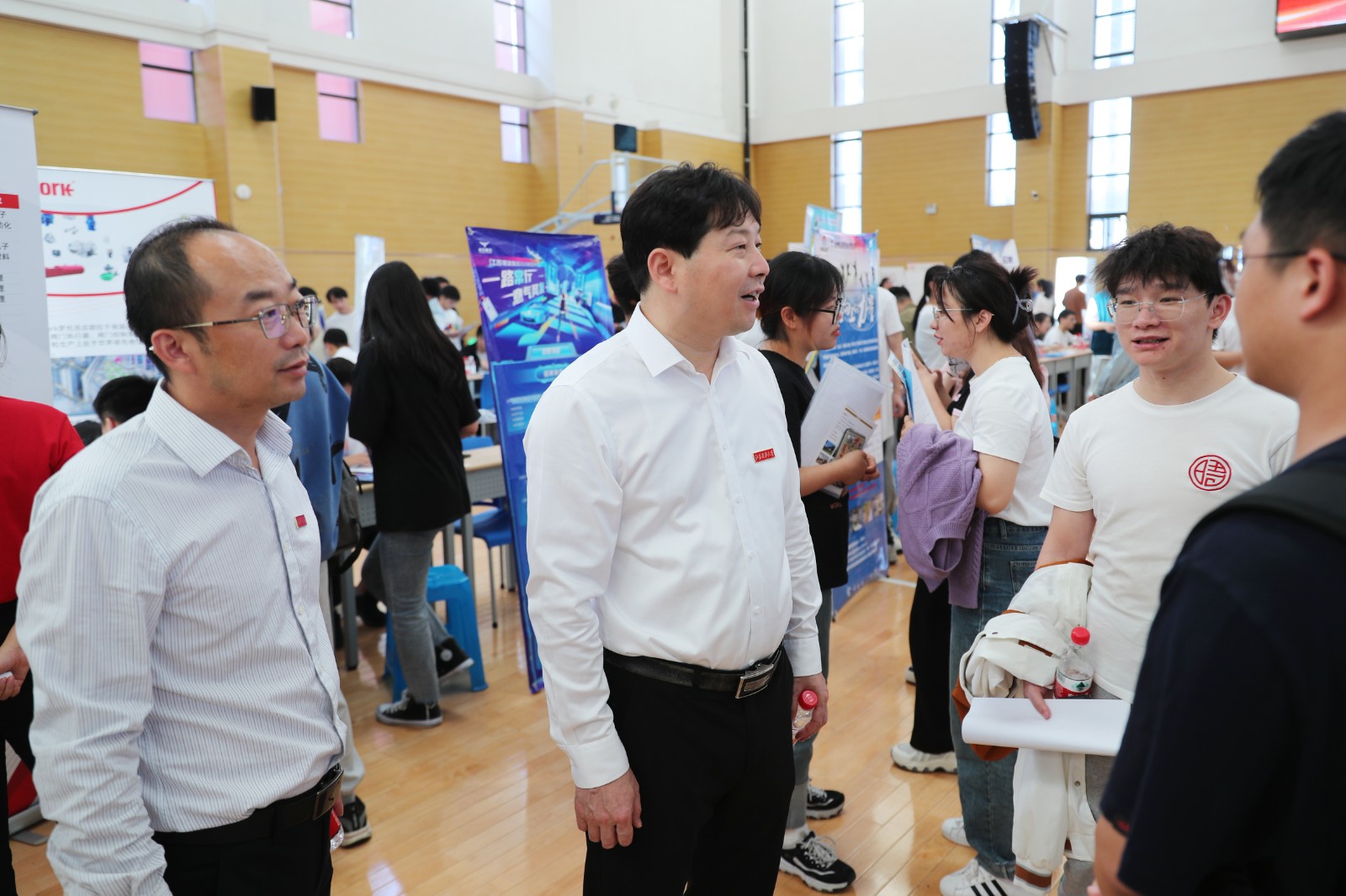 此次招聘会由江苏省教育厅、江苏省人力资源和社会保障厅主办,江苏省高校招生就业指导服务中心、江苏省劳动就业管理中心、江苏省职业介绍中心、910023威尼斯承办,共有181家企事业单位参会,涵盖新能源新材料、高新制造、生物化工及信息软件等多个行业,岗位需求人数8000余人,与威尼斯官网各学科专业相匹配,呈现出单位质量高、岗位多样化的特点。其中,央企国企、上市公司及高新技术等高质量用人单位超过80%。本次招聘会是在充分深入调研获悉企业高校引才需求后迅速策划组织的一次招聘活动,活动践行江苏省制造业高端化、智能化、绿色化发展战略,结合镇江地区高校毕业生就业实际,针对能源动力工程、新能源科学与工程、机械工程、材料工程等学科专业深入挖掘企业揽才需求,联动高校、地方相关产业部门等协同发力,汇聚众多名企踊跃参与,精准扩容优质岗位“蓄水池”。招聘会期间,胡爱祥与用人单位和毕业生亲切交流,详细了解企业用工需求和毕业生求职就业情况。